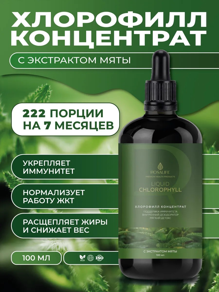 Universal liquid chlorophyll is useful for problem skin, helps eliminate rashes, and helps fight acute respiratory viral infections. Cleansing the body normalizes stomach function. Try drinking chlorophyll and give your body beauty and health today!