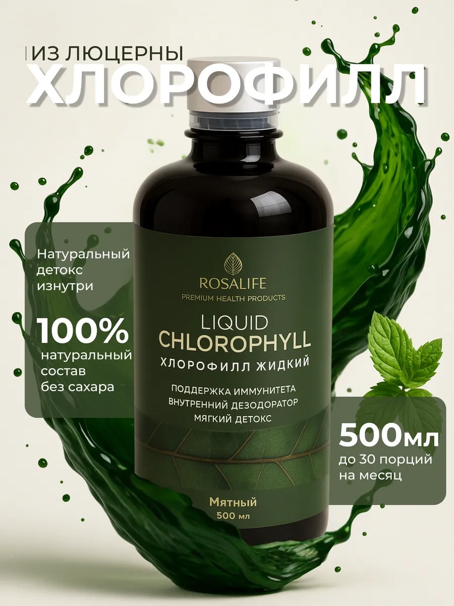 Натуральный хлорофилл жидкий из люцерны со вкусом мяты - он идеален для очищения организма. В жкт отлично регулирует количество бактерий, вызывающих чувство голода и тягу к сладкому, ускоряет обмен веществ,, очень полезны хлорофилом полоскания, активно гибнут вредные бактерии во рту, обладает противомикробными свойсвами.
