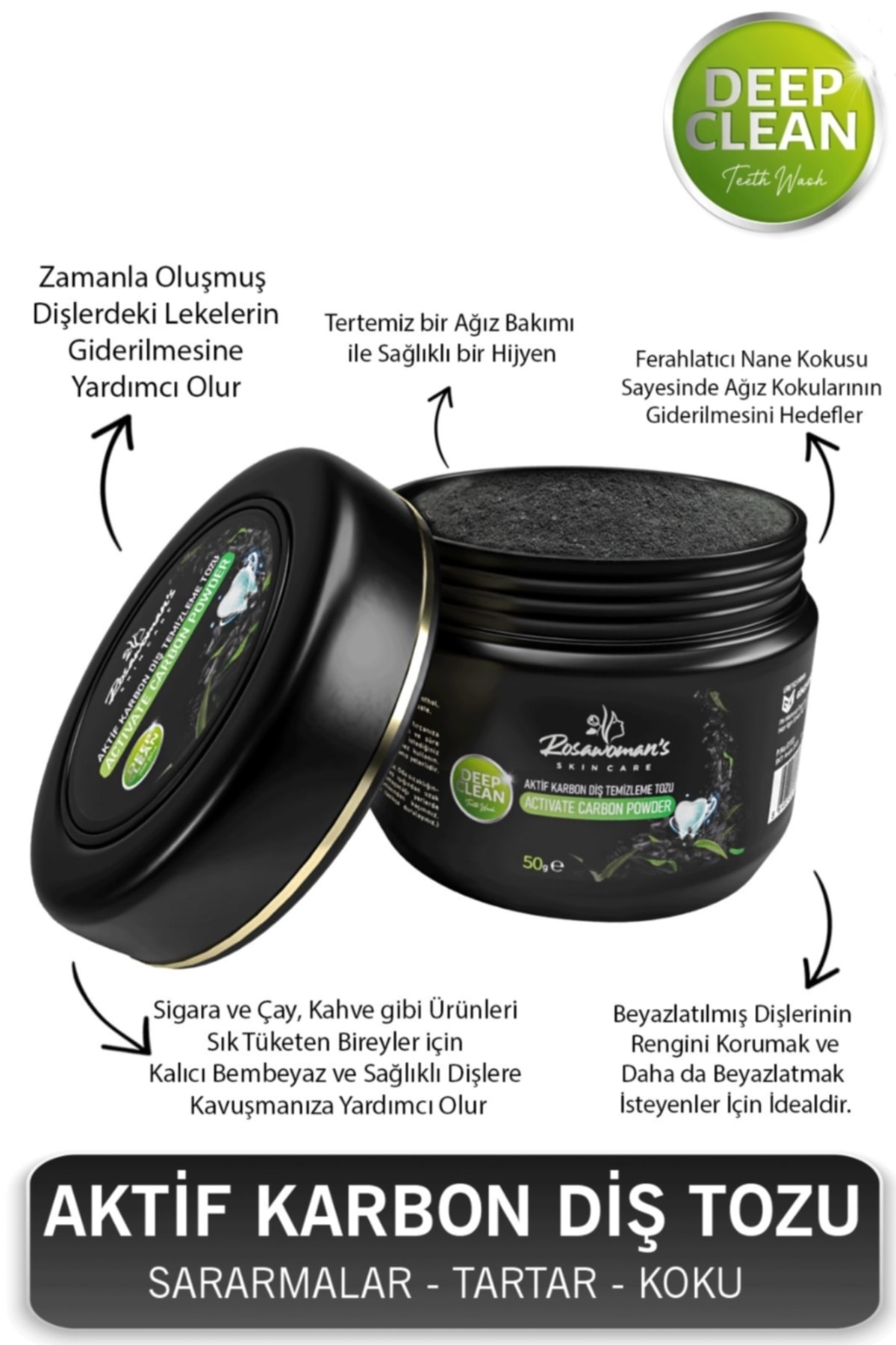 Rosawomans Teeth Cleaning Powder 50g Activated Carbon & Mint