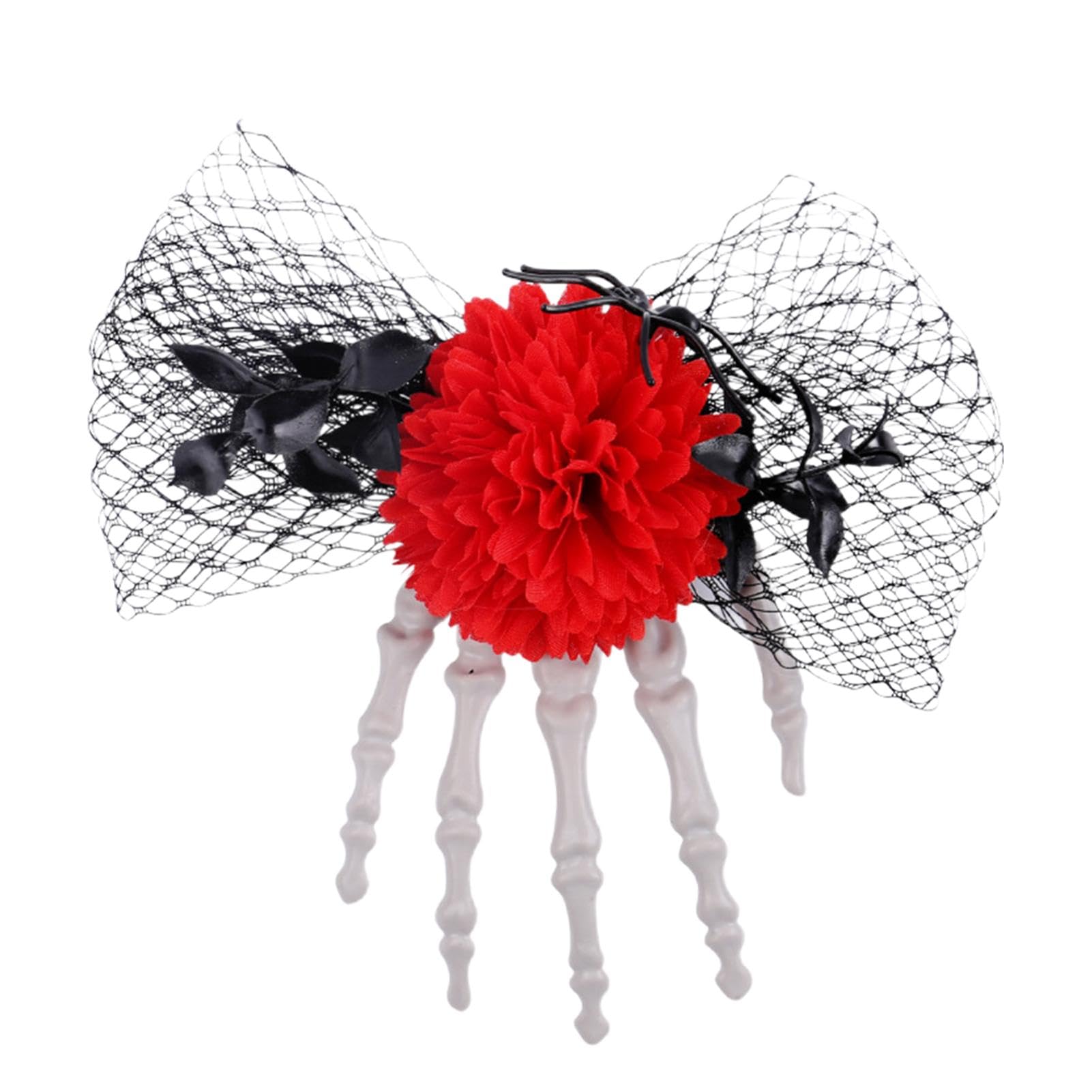 Rose Hair Pins - Skeleton Hand Barrettes for Halloween - Festive Horror Hair Pins Women & Girls Hair Accessories for Masquerade Red