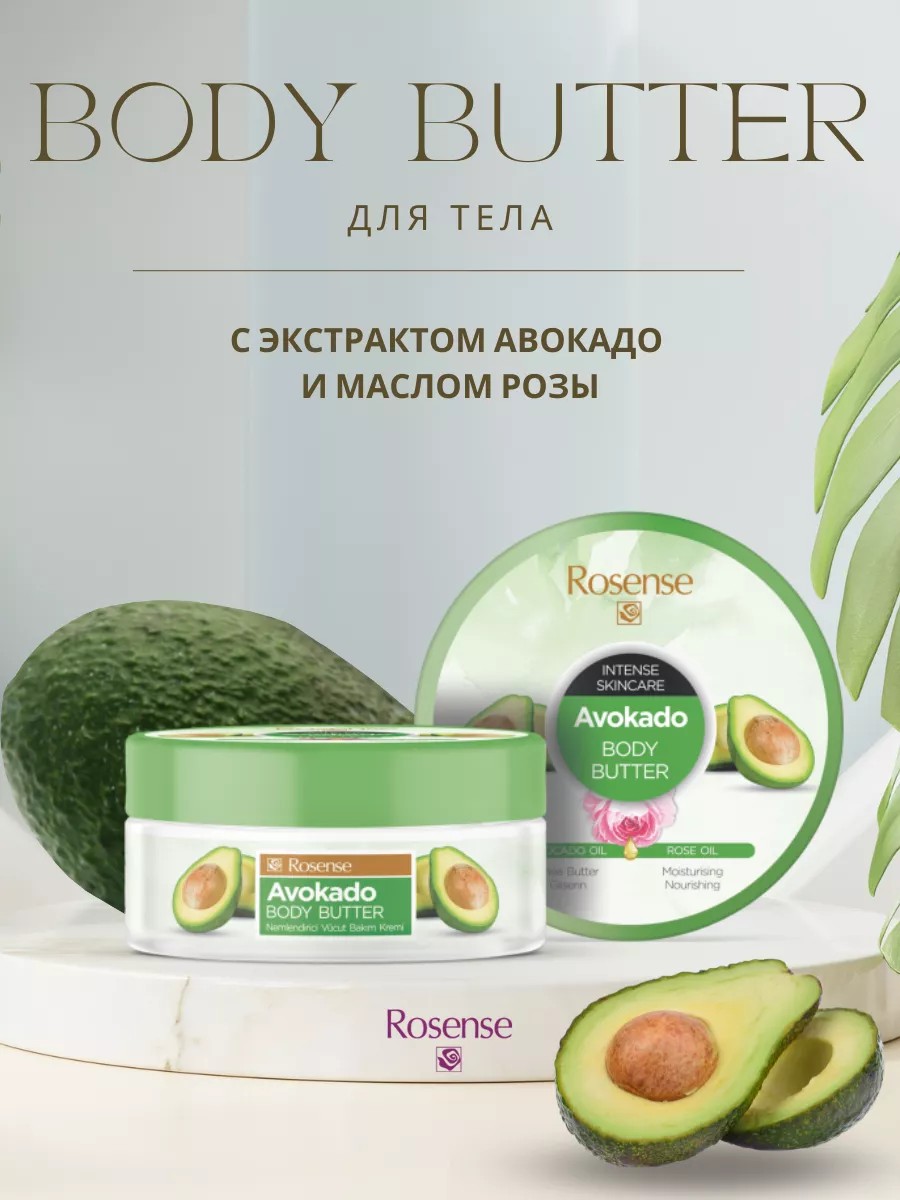 Крем-баттер с экстрактом авокадо и маслом розы Росенс станет вашим любимым средством для ухода за телом, которое обеспечит коже комфорт и красоту.