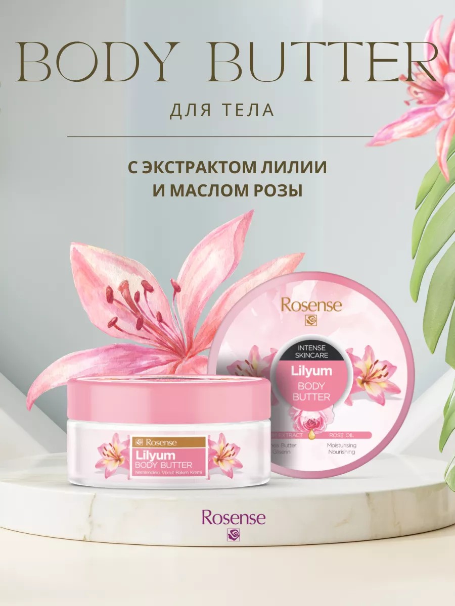 Батер это крем- масло, разработанное по стандартам Кореи. Имеет выраженный запах, долго сохраняется на теле и не требует дополнительного нанесения парфюма. Натуральный состав без вредных отдушек и bha не пересушивает эпидермис. Крем-баттер от Rosense имеет легкую текстуру и быстро впитывается, что делает его идеальным средством для ежедневного ухода за кожей. Он подходит для всех типов кожи, включая чувствительную и сухую. Попробуйте крем-баттер с экстрактом Лилии и маслом розы Росенс, он станет вашим любимым средством для ухода за телом, которое обеспечит коже комфорт и красоту. Фито товары для красоты и брендовая уходовая косметика - это полезный и приятный подарок для мамы , подруги , любимой девушки, дочке и свекрови или женщины. Также подойдет для составления набора / бьюти бокса и в качестве презента на любой праздник 8 марта, день рождения, Новый год, день учителя, в знак благодарности и просто так без повода.