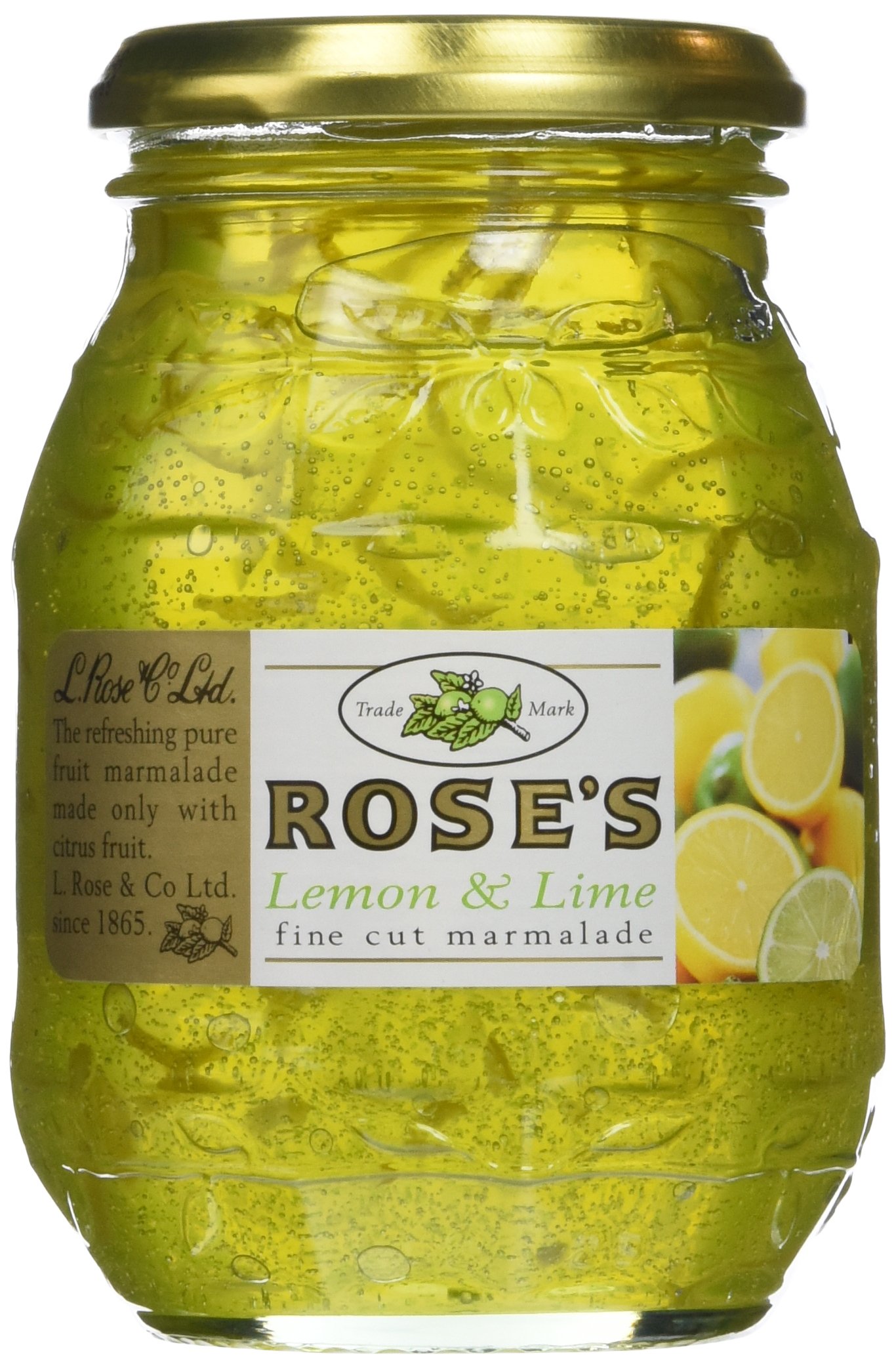 : Rose, lemon, and lime marmalade brings the bright flavors of citrus to your breakfast table. This pack contains three European-style jars, perfect for spreading on toast or using as a cooking ingredient. The marmalade features a blend of lemon and lime for a balanced citrus taste. The product comes in convenient packaging that is easy to store and maintain. Directions: Spread on toast or use as a cooking ingredient.Flavor profile: Combines zesty lemon and lime citrus fruits for a tangy breakfast spread. Package contents: Contains 3 jars of rose, lemon, and lime jam.Description du produit La marmelade de roses citron et citron vert apporte les saveurs vives des agrumes à votre table de petit-déjeuner. Ce paquet contient trois pots de confiture de style européen, parfaits pour tartiner sur du pain grillé ou utiliser comme ingrédient culinaire. La marmelade dispose d'un mélange de citron et de citron vert pour un goût équilibré d'agrumes. Le produit est livré dans un emballage pratique qui est facile à ranger et à entretenir. Mode d'emploi Étalez sur du pain grillé ou utilisez-le comme ingrédient de cuisine.Profil de saveur : combine des agrumes zestés de citron et de citron vert pour une tartinade acidulée pour le petit-déjeuner. Contenu de l'emballage : contient 3 pots de confiture de roses, citron et citron vert.Roses Lemon Lime Marmalade 3 Pack by Roses