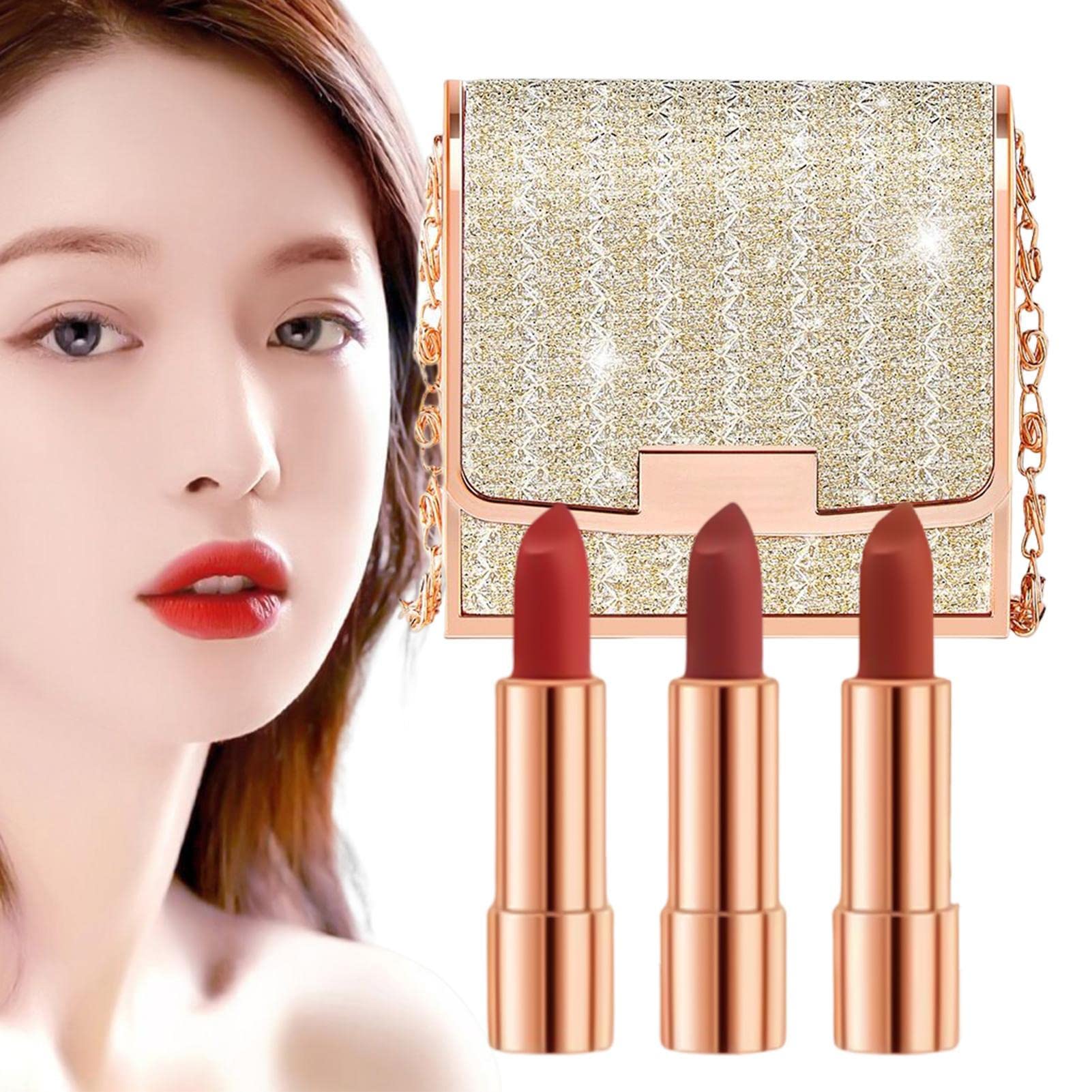 Description: This isn't just lipstick, it's art. Uniquely packaged with a charm chain bag, exquisite and easy to carry, the set contains three matte lipsticks. Illuminate your beautiful lips with our matte lipsticks in a charming chain bag. It's highly pigmented and delivers intense, vibrant color with just one swipe, boasting a superb matte finish. With our unique gift packaging, you'll receive a beautiful, easy-to-carry charm bag—the perfect gift for your loved ones for Valentine's Day, a birthday, or any special occasion. Features: Specifications: 3.5g x 3 pieces Presentation: 1 set of matte lipsticksMeets every need: From classic nude shades to vibrant reds, these are the most popular colors. This liquid lipstick meets the needs of every girl. Easy to use: This nude lipstick set is made with non-irritating ingredients, is waterproof, sweatproof, long-lasting, non-sticky, and won't fade. The lightweight texture and natural color ensure a velvety matte finish. Excellent gift: This matte lipstick set is the perfect gift to express your love, a meaningful anniversary gift for your lover, girlfriend, boyfriend, wife, husband, Valentine's Day, wedding gift, or simply a gift for love. Natural ingredients: This velvety matte lipstick set is made from natural ingredients and is waterproof, sweatproof, long-lasting, non-sticky, and lightfast. Long-lasting effect: This non-sticky, velvety matte lipstick won't fade and lasts all day when fully dry. And because of its high coverage, the color doesn't bleed when you drink and kiss.Lot de 3 rouges à lèvres mats en velours mat liquide dans un sac à chaîne, kits de maquillage pour les lèvres, crème , tache de lèvres pigmentée imperméable RosixehirdDESCRIPTION DU PRODUIT Description: Ce n'est pas seulement un rouge à lèvres, c'est de l'art. Emballage cadeau unique avec un sac à chaîne à breloques, exquis et facile à transporter, l'ensemble contient trois rouges à lèvres mats, illuminez vos belles lèvres avec nos rouges à lèvres mats dans un charmant sac à chaîne. Il est hautement pigmenté et offre une couleur intense et intense en un seul coup de chiffon avec une superbe finition mate. Avec notre emballage cadeau unique, vous recevrez un beau sac à breloques facile à transporter, le cadeau parfait pour vos proches pour la Saint-Valentin, un anniversaire ou toute occasion spéciale. Fonctionnalités: Spécifications : 3,5 g x 3 pièces. Présentation : 1 jeu de rouges à lèvres matsRépond aux besoins : des tons nudes classiques aux tons rouges vifs, ce sont les couleurs les plus populaires. Ce rouge à lèvres liquide répond aux besoins de toutes les filles. Facile à utiliser : cet ensemble de rouges à lèvres nude est composé d'ingrédients non irritants, est imperméable, résistant à la transpiration, durable, antiadhésif et ne se décolore pas. La texture légère et la couleur naturelle assurent une finition mate et veloutée. Excellent cadeau : cet ensemble de rouges à lèvres mat est le cadeau parfait pour exprimer votre amour, un cadeau d'anniversaire de couple significatif pour votre amoureux, petite amie, petit ami, femme, mari, Saint-Valentin, cadeau de mariage ou cadeau d'amour. Ingrédients naturels : cet ensemble de rouges à lèvres mat en velours est fabriqué à partir d'ingrédients naturels et est imperméable, résistant à la transpiration, durable, antiadhésif et résistant à la lumière. Effet durable : il s'agit d'un gobelet antiadhésif et d'un rouge à lèvres mat velouté qui ne se décolore pas qui dure toute la journée lorsqu'il est complètement sec. Et en raison de son pouvoir couvrant élevé, la couleur ne dépasse pas lorsque vous buvez et vous embrassez.
