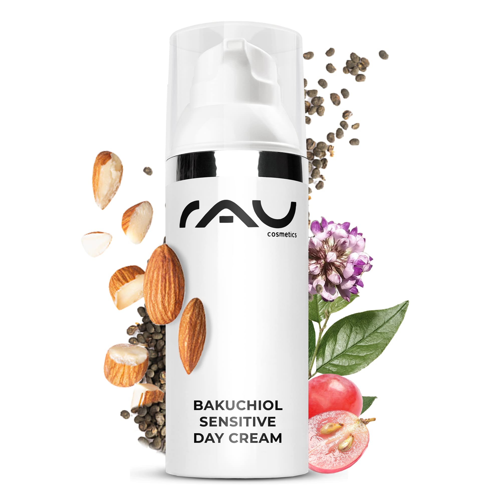 Skin type: mature skin, dry skin, blemished skin, sensitive skin,Skin need: calming, regeneration, moisture,Hautziel: anti-aging, anti-pimples,Type: face cream men women.Rely on bright, young, young skin - with rough quality skin care with production in Germany.Since 2009 we have been supporting humans like you on the way to their dream skin!.The bakuchiol sensitive cream is also suitable for bakuchiol or hyaluron serum, eye cream, night cream and before make-up.Use the cream on the cleaned skin.The face cream is ideal for impure & mature skin.Bakuchiol is a collagen booster & thus acts against skin aging & wrinkles.Macadamia oil, sunflower oil & grape seed oil maintain the skin.You want to use retinol, but have sensitive skin?The delicate cream uses Bakuchiol, which is a gentler alternative to retinol (vitamin A).Same effect, no irritation!.HAUTTYP: reife Haut, trockene Haut, unreine Haut, sensible Haut,HAUTBEDÜRFNIS: Beruhigung, Regeneration, Feuchtigkeit,HAUTZIEL: Anti-Aging, Anti-Pickel,TYP: Gesichtscreme Männer Frauen. Verlasse dich auf strahlend schöne, jugendliche Haut – mit RAU Qualitätshautpflege mit Produktion in Deutschland. Seit 2009 unterstützen wir Menschen wie dich auf dem Weg zu ihrer Traumhaut!. Die Bakuchiol Sensitive Creme eignet sich zusätzlich zu Bakuchiol oder Hyaluron Serum, Augencreme, Nachtcreme und vor Make-Up. Verwende die Creme auf der gereinigten Haut. Die Gesichtscreme ist ideal für unreine & reife Haut. Bakuchiol ist ein Kollagen Booster & wirkt so gegen Hautalterung & Falten. Macadamiaöl, Sonnenblumenöl & Traubenkernöl pflegen die Haut. Du möchtest Retinol nutzen, aber hast empfindliche Haut? Die zarte Creme nutzt Bakuchiol, welches eine sanftere Alternative zu Retinol (Vitamin A) ist. Gleiche Wirkung, keine Irritationen!.RAU Cosmetics Bakuchiol Sensitive Day Cream 50 ml - Retinol Creme Gesicht (Bakuchiol) - Leichte Tagescreme - Gesichtspflege für reife Haut & unreine Haut - Anti Aging Creme