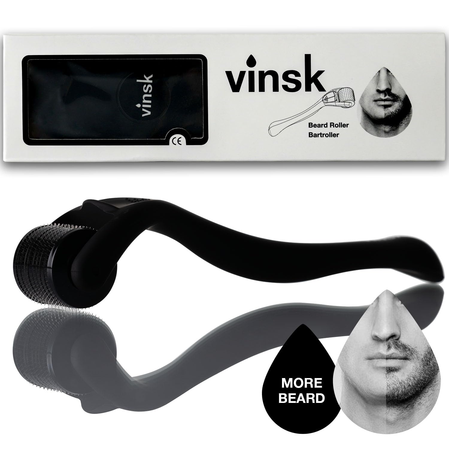 ? BEARD CARE: Microneedling with the Bartroller significantly increases the skin's absorption capacity. Thanks to the microneedles, your skin can more effectively absorb beard care products, such as beard oils or beard serums. ? CONTROL: The Bartroller for Men is small, maneuverable, and has a dynamic design. Equipped with a Bartroller head attached to a robust and durable hinge, the Bartroller promises total control and precise targeting of cheeks, sideburns, and mustache hairs. Thanks to its optimized technology, the Bartroller promotes beard growth that is thick, dense, and resistant to breakage. ? STIMULATING: The needle roller not only increases beard growth but also effectively improves skin texture, addressing dark circles, wrinkles, acne, blemishes, and scars all over the body. It also effectively prevents hair loss while providing a stimulating effect. ? MORE BEARDS: The beard roller head contains 540 needles (0.5 mm). During use, these needles create micro-injuries in the skin and hair follicles. This process triggers collagen production, which stimulates beard growth by promoting blood circulation and keratin production. This also allows for more effective absorption of grooming products. ? BRAND-NAME PRODUCT: The Vinsk brand beard roller is among the top-of-the-line products in the beard care industry. Look no further and trust our brand quality with a 100 satisfaction guarantee. We are confident in the quality of our branded products, which is why we offer a 100 money-back guarantee if you are not satisfied.? SOIN DE LA BARBE : La micro-aiguilletage avec le Bartroller augmente considérablement les possibilités d'absorption de la peau. Grâce à la micro-aiguille, votre peau peut absorber plus efficacement les produits de soin de la barbe, tels que les huiles à barbe ou les sérums à barbe. ? CONTROLE : Le Bartroller for Men est petit, maniable et possède un design dynamique. Équipé d'une tête de Bartroller fixée à une charnière robuste et durable, le Bartroller promet un contrôle total et un ciblage précis des joues, des favoris et des poils de la moustache. Grâce à sa technique optimisée, le Bartroller apporte dureté, densité et résistance à la traction à la croissance de la barbe. ? STIMULANT : le rouleau à aiguilles augmente non seulement la croissance de la barbe, mais améliore aussi efficacement la texture de la peau en cas de cernes, de rides, d'acné, de marques de boutons et de cicatrices sur tout le corps, et prévient efficacement la chute des cheveux tout en exerçant un effet stimulant. ? PLUS DE BARBES : la tête du rouleau à barbe est composée de 540 aiguilles (0,5 mm). Pendant l'utilisation, ces aiguilles provoquent des "microlésions" dans la peau et dans les follicules. Cette procédure permet de déclencher la production de collagène, ce qui stimule la croissance de la barbe en favorisant la circulation sanguine et la production de kératine. Cette procédure permet également d'absorber plus efficacement les produits de soin tels. ? PRODUIT DE MARQUE : Le galet à barbe de la marque vinsk fait partie des produits haut de gamme dans le domaine des soins de la barbe. Ne cherchez pas longtemps et faites confiance à notre qualité de marque avec une garantie de satisfaction à 100 . Nous sommes convaincus de la qualité de nos produits de marque, c'est pourquoi nous vous offrons une garantie de remboursement à 100 en cas d'insatisfaction.rouleau à barbe pour une croissance vigoureuse de la barbe Dermaroller pour la croissance et les soins de la barbe derma Beard Roller 0.5mm 540 needles microneedling Stimuler accélérer