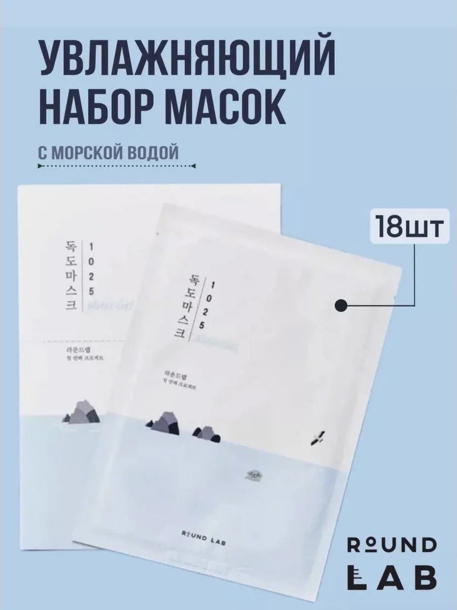 ROUND LAB Набор масок тканевых увлажняющих с морской водой 18 шт
