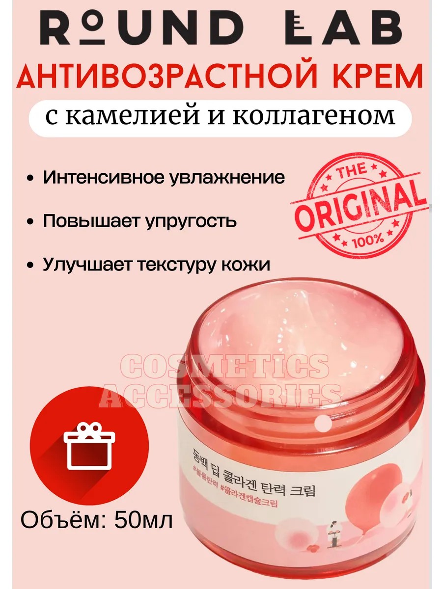 ROUND LAB Elastic Recipe Camellia Collagen Cream - the optimal ratio of a powerful antioxidant from camellia flowers, camellia flavonol quercetin and skin nutrient inositol provides intensive care for elasticity, preventing the production and loss of collagen.