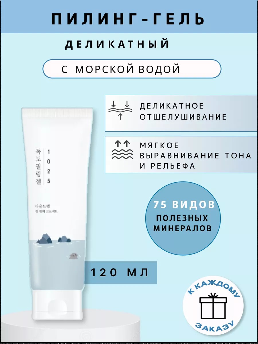 ГельRound Lab1025 Dokdo Peeling Gelс деликатным пилинг-эффектом выравнивает поверхность, улучшает рельеф и текстуру, смягчает и разглаживает даже чувствительную кожу. Средство бережно полирует, аккуратно удаляя ороговевшие частицы и излишки кожного сала без раздражения и шелушения, а также успокаивает и интенсивно увлажняет, укрепляя влагоудерживающий барьер. Формула содержит запатентованный комплекс на основе энзимовHatching EX-07, который является мягким аналогом АНА\ВНА кислот. Он оказывает действие пилинга, отшелушивает омертвевшие клетки и запускает регенерацию тканей. 8 видов гиалуроновой кислотыобладают способностью связывать влагу и образуют влагоудерживающий барьер на поверхности эпидермиса, за счёт чего устраняют сухость и чувство стянутости, поддерживают эластичность и упругость. Лактобионовая кислота (PHA)—деликатный аналог АНА-кислот, отшелушивает омертвевшие клетки, препятствует гиперкератозу, смягчает, выравнивает тон, нормализует гидролипидный баланс, не вызывает фоточувствительности. Морская вода снижает потерю влаги, улучшает синтезлипидов, поддерживает чистоту кожи. Тонизирует, усиливает эффект от других компонентов. Пантенол(витамин В5)оказывает мощный регенерирующий эффект, заживляет и успокаивает, снимает зуд и раздражение. Аллантоиннейтрализует последствия окисления, снижает чувствительность, увлажняет. Протеазы— это ферменты, которые расщепляют белковые соединения, благодаря чемуспособствуют отшелушиванию и очищению от омертвевших клеток. Подходит для всех типов кожи. Ранесите небольшое количество средства на очищенную влажную кожу, мягко помассируйте. Тщательно умойтесь.