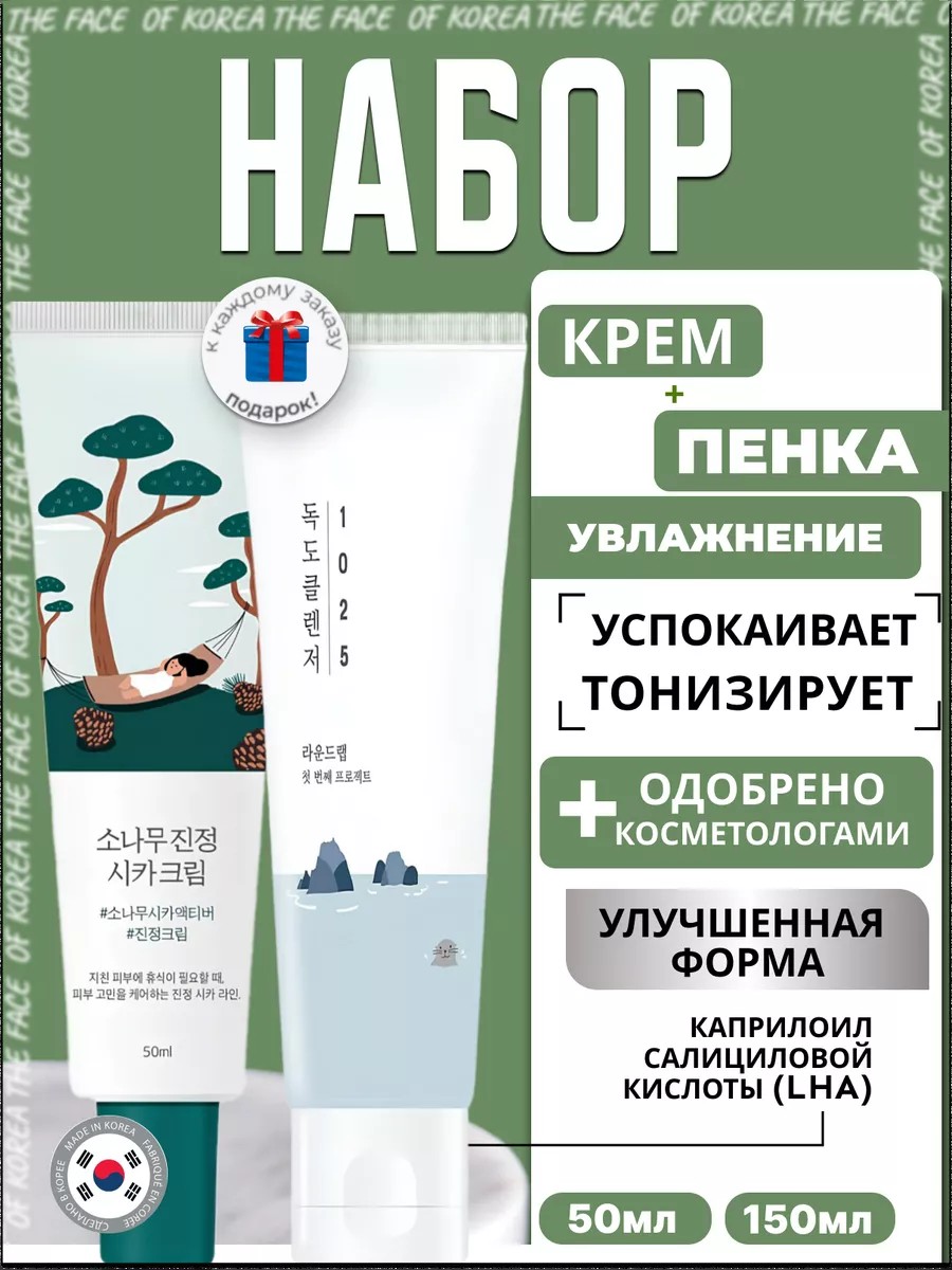 Round Lab Успокаивающий набор для лица с центеллой крем + пенка