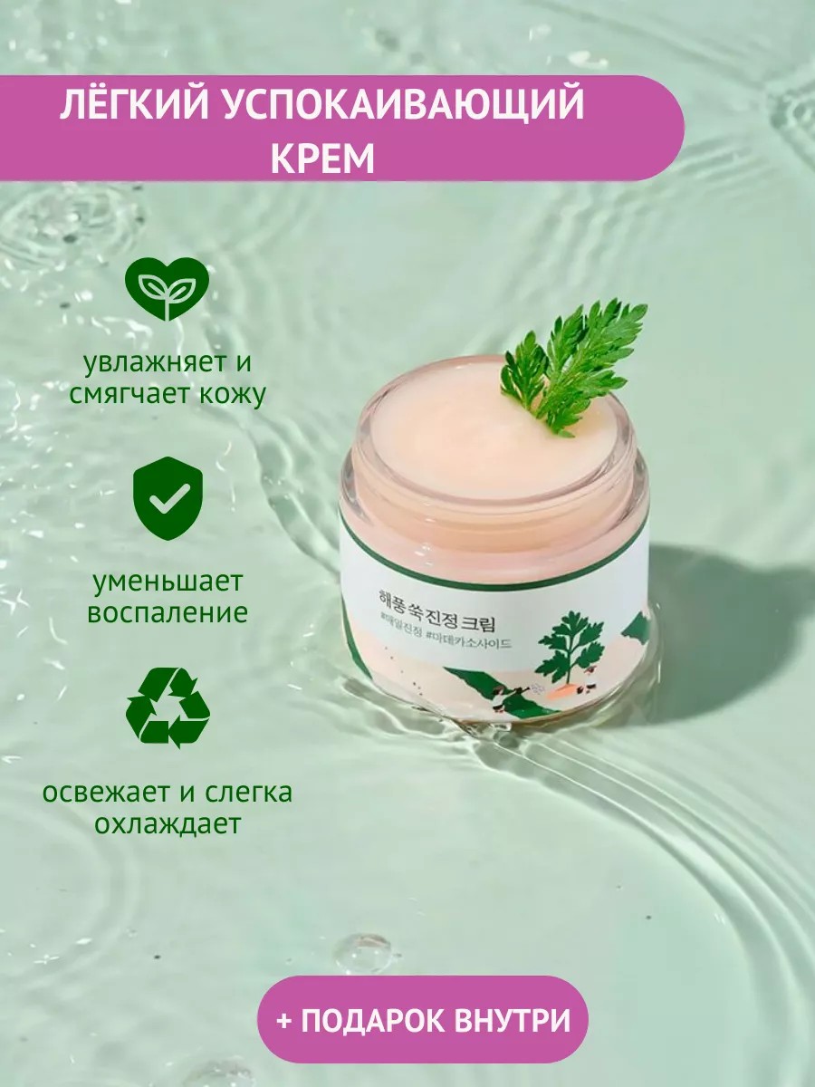 Крем Round Lab Mugwort Calming Cream слегка охлаждает, успокаивает, смягчает и увлажняет чувствительную и проблемную кожу, подавляет воспалительный процесс и снижает потерю влаги.