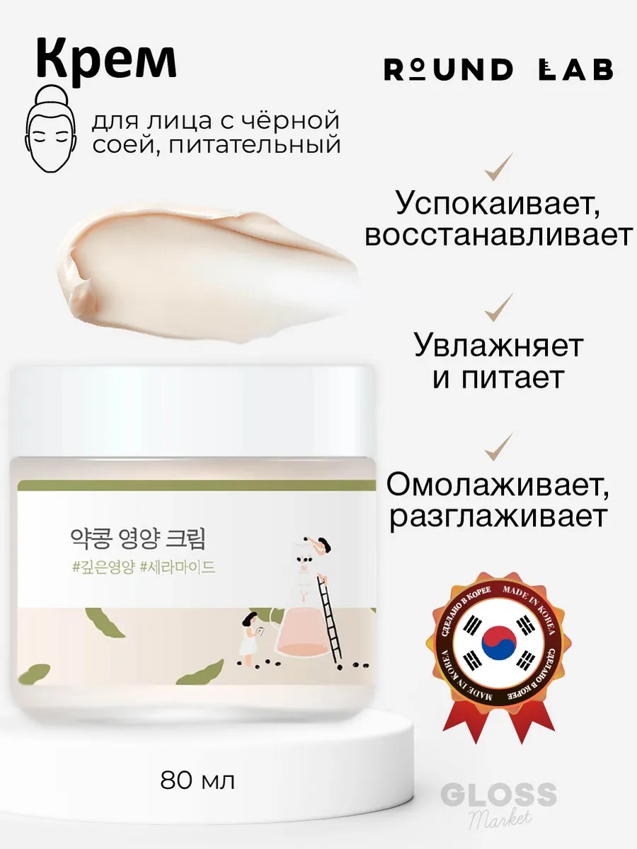 | Комплектация | Питательный крем с черной своей Round Lab Soybean Nourishing Cream |