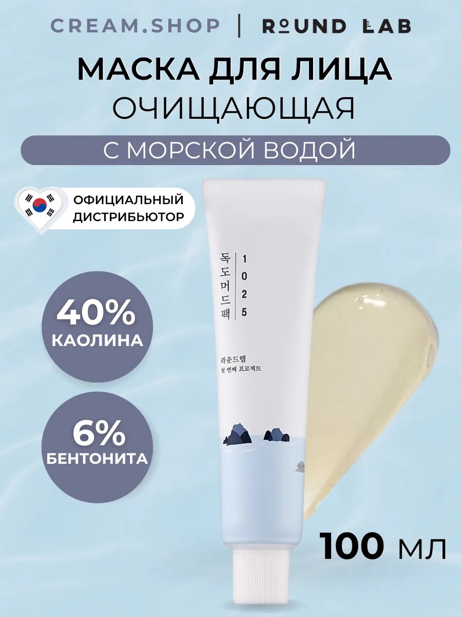 Если ваша кожа часто подвергается акне и прыщам, то этот продукт станет надежным союзником в ежедневном уходе. Маска на основе глины прекрасно очищает кожу, сужает поры и уменьшает чёрные точки. Маска от Round Lab - это профессиональное решение против высыпаний, прыщей, акне и других недостатков кожи. Глиняная маска Dokdo Mud Pack улучшает общее состояние кожи, очищает кожу и поры от загрязнений, интенсивно увлажняет и успокаивает, делая ее чистой и сияющей. Каолин (глина) 40% обеспечивает интенсивную глубокую чистку и детокс, сохраняя кожу при этом мягкой и увлажненной. Разномолекулярная гиалуроновая кислота притягивает и удерживает влагу, предотвращая обезвоженность и шелушение. Морская вода возле острова Уллындо (Корея) питает кожу высоким содержанием минералов и помимо интенсивного увлажнения увеличивает способность кожи удерживать ценную влагу внутри. Пантенол, аллантоин и лактобактерии успокаивают и восстанавливают раздраженную и чувствительную кожу. Маска восстанавливает микробиом кожи, делает её более ровной и безупречной. У маски безопасный натуральный состав, её можно использовать для подростков, для молодой и возрастной кожи. Корейская косметика известна своими инновационными разработками и эффективностью. Уходовой продукт от Round Lab - не исключение. Маска поможет бороться с несовершенствами кожи, проблемными участками и морщинами. Обладает приятной сливочной текстурой. Подходит для проблемной, жирной и комбинированной кожи.