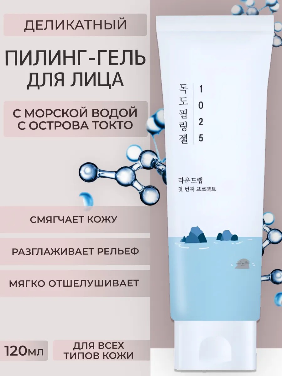 Гель Round Lab 1025 Dokdo Peeling Gel с деликатным пилинг-эффектом выравнивает поверхность, улучшает рельеф и текстуру, смягчает и разглаживает даже чувствительную кожу.