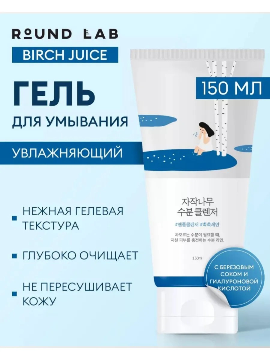Round Lab Birch Juice Moisturizing Cleanser gently and carefully cleanses the skin without overdrying it.