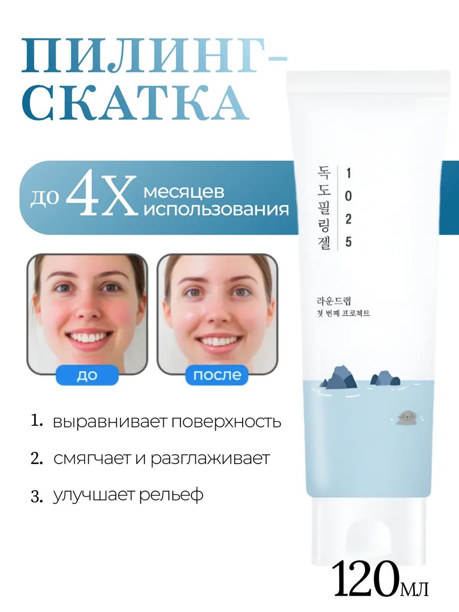 Мягкий пилинг гель - ROUND LAB 1025 Dokdo Peeling Gel 120 мл обеспечивает нежный гипоаллергенный пилинг из Кореи. Это комфортный пилинг скатка с натуральными увлажняющими и питательными компонентами. Уход за балансом влаги в глубоководных водах острова Уллындо. Идеальный, мягкий уход за омертвевшими клетками кожи. Влажный увлажняющий пилинг с 8 видами гиалуроновой кислоты.* HATCHING EX-07 — это ингредиент с низким уровнем раздражающего действия, подходящий для ежедневного использования, который обновляет поверхность кожи и мягко отшелушивает. 8 типов гиалуроновой кислоты обеспечивают увлажнение, предотвращая стянутость кожи после нанесения. Пилинг скатка Выравнивает тон и текстуру кожи, снимает воспаления, делает кожу гладкой и шелковистой. Богатый растительный состав помогает ухаживать за кожей любого типа, включая чувствительную, увлажняет и помогает удерживать влагу, снимает отечность, осветляет пигментацию и предотвращает появление морщин. Средство эффективно удаляет сальные пробки и сужает поры. Применение: нанести средство на сухую очищенную кожу лица аккуратными массирующими движениями до появления "катышков", затем смойте остатки средства теплой водой. Применять 1-2 раза в неделю.