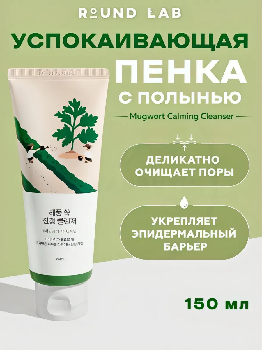 Пенка Round Lab Mugwort Calming Cleanser прекрасно подходит для ежедневного умывания чувствительной и проблемной кожи за счёт своей мягкой формулы.