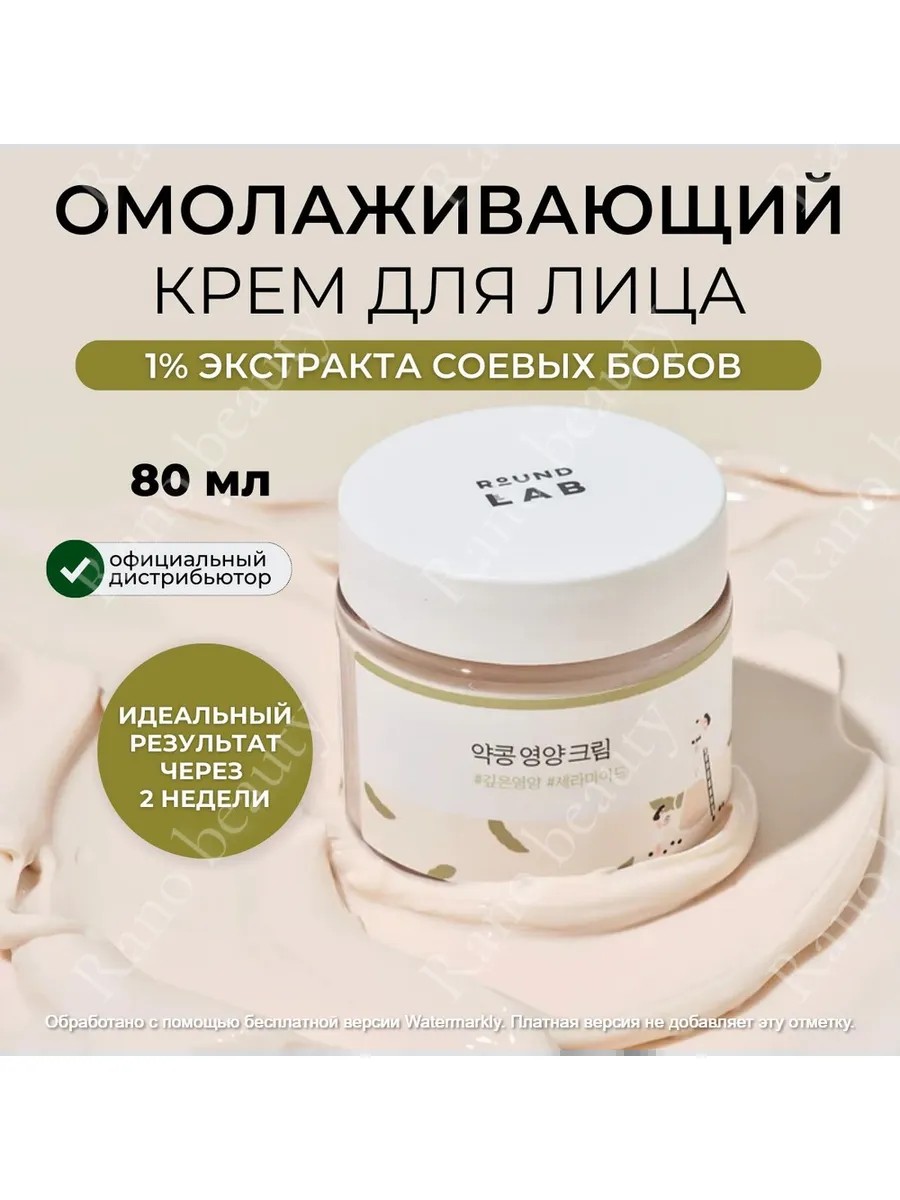 Крем Round Lab Soybean Nourishing Cream дарит глубокое питание и увлажнение коже с возрастными изменениями, улучшает её текстуру, уменьшает выраженность морщин и других несовершенств.