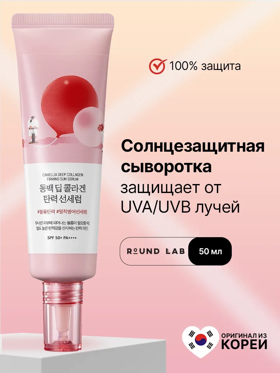 | Комплектация | Солнцезащитная сыворотка Round Lab Camellia Deep Collagen Firming Sun Serum SPF50+ PA++++ 50 мл |