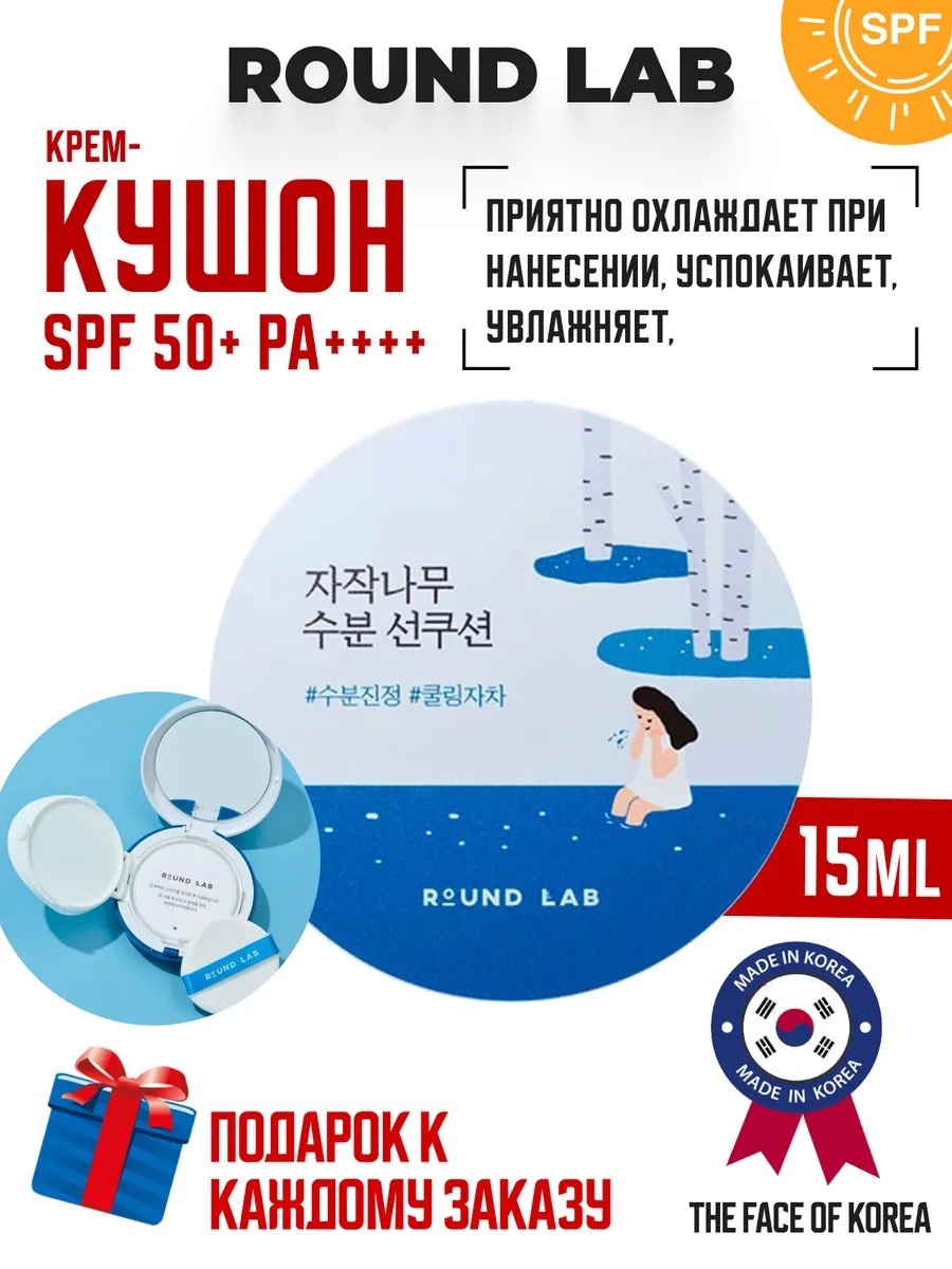 Солнцезащитный кушон с березовым соком ROUND LAB Birch Juice Moisturizing Sun Cushion - солнцезащита в компактном формате, удобно наносить тонким слоем и обновлять в течение дня.