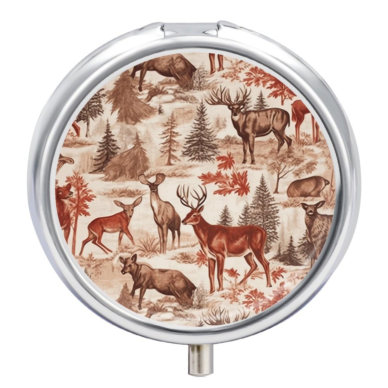 washing instructions: If you want to clean the pill container, we recommend that you use a rag to wipe it regularly. Convenient for Everyday Use: Lightweight and compact size fits in pocket, purse or travel bag. Easy access to keep pills and medications safe, perfect for everyday medication storage. applicable scenarios: The portable pill organizer has 3 separate compartments to keep your pills organized and is an item for your daily use. Perfect for everyday use in your purse, travel bag, briefcase or jeans back pocket.ideal gift: Pill dispenser unique paintings and beautiful artistic pattern designs can bring you a better mood for use. Not only does it serve as a practical pill organizer, it also serves as a great decoration for your outfits and perfectly complements your purse or handbag. These pill boxes are beautifully designed and easy to carry. Pill dispenser are suitable as holiday or birthday gifts for your family and friends to express your care and love. multipurpose: This portable pill box can be used to store pills, vitamins, medicines, candy, cosmetics, jewelry, ear plugs, earplugs and more. Perfect for travel, work, camping and other outdoor activities. Your pill container is guaranteed to be modern and elegant, the pocket pill box is the perfect companion for travel, gym, office, and enjoy your high quality life!. easy to use: This Compact pill box has been rigorously tested to ensure ease of use for every customer. The pill caddy unique button design ensures the vitamin organizer stays closed and won't pop out, so there's no need to worry about pills getting mixed up or falling out of your computer bag, purse, pocket, gym bag, or suitcase. portable pill box: The pill box for purse 1.97*1.97*0.67 inches. The portable medication organizer is small enough to fit in your suit pocket, purse, suitcase, backpack, handbag, and coat pocket, and Small pill box fits in your purse or purse wherever you go. premium materials: Our Animal Wilderness Bear Deer print metal pill case are made of high-quality metal pill box with compartments construction with plastic dividers inside. Pill box for daily use are durable, not easily faded or damaged, and have a long service life. With two separate compartments, this portable pill box can last you all day long.
