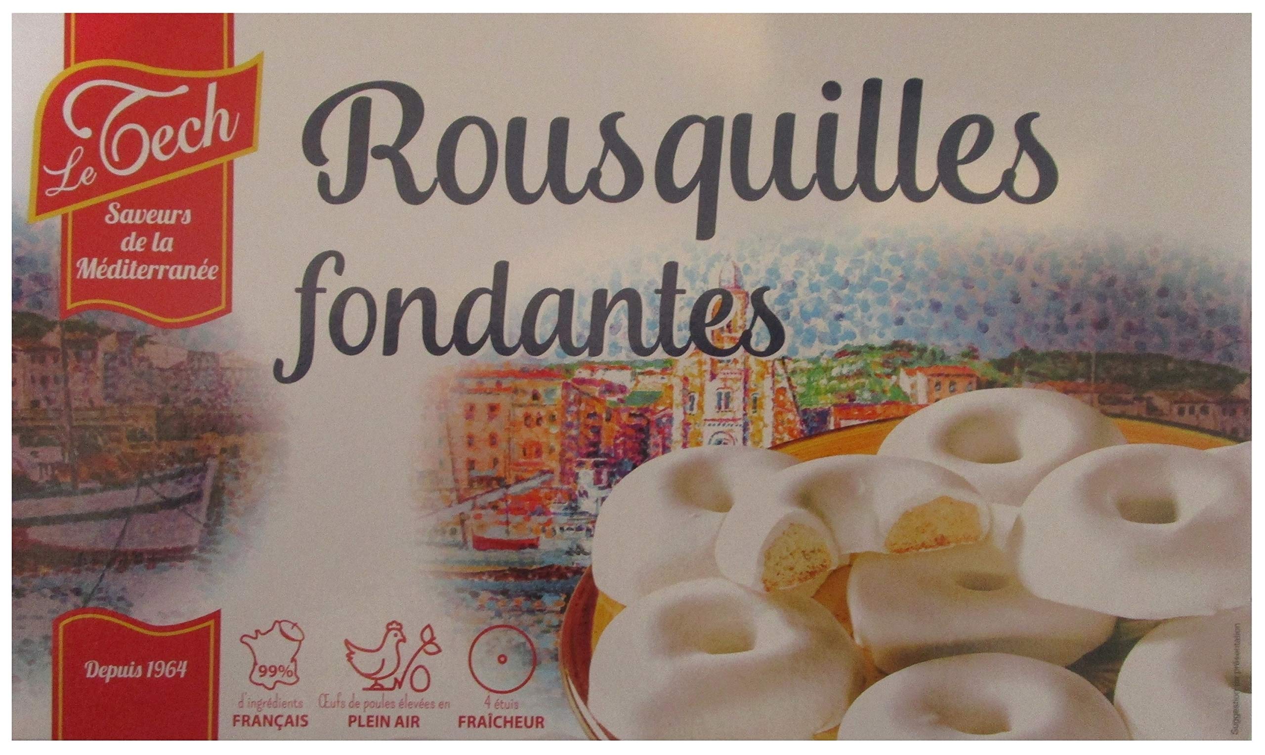 Rousquilles fondantes 400gr (4 freshness cases) The Rousquille is to Roussillon what the sun is to the Mediterranean: an essential product of southern specialties. Soft biscuit in the shape of a small crown, coated with a subtly lemon-flavored meringue, the Rousquille no longer has to prove itself in the world of local products. Ingredients: wheat flour, sugar, margarine (vegetable oil and fat (palm, rapeseed, sunflower in varying proportions), water, emulsifier: E471, acidity regulator: citric acid, beta-carotene coloring, flavorings). Eggs, honey, stabilizer: sorbitol, glucose syrup, invert sugar, egg white, powder, raising agent: E503ii-E504, salt, lemon essential oil, natural anise flavoring, vanillin, milk protein, acidity regulator: citric acid. May contain traces of nuts. Minimum shelf life: 1 monthRousquilles. Rousquilles fondantes 400gr (4 étuis fraicheur) La Rousquille est au Roussillon ce que le soleil est à la Méditerranée: un produit incontournable des spécialités du sud. Biscuit moelleux en forme de petite couronne, enrobée d'une meringue subtilement parfumée au citron, la Rousquille n'a plus à faire ses preuves dans l'univers des produits du terroir. Ingrédients : farine de blé, sucre, margarine (huile et graisse végétale (palme, colza, tournesol en proportion variable), eau, émulsifiant : E471, correcteur d'acidité : acide citrique, colorant bêtacarotène, arômes). Œufs, miel, stabilisant : sorbitol, sirop de glucose, sucre inverti, blanc d'œuf, en poudre, poudre à lever : E503ii-E504, sel, huile essentielle de citron, arôme naturel anis, vanilline, protéine de lait, correcteur d'acidité : acide citrique. Trace éventuelle de fruits à coques. D.L.C. minimum : 1 moisRousquilles.