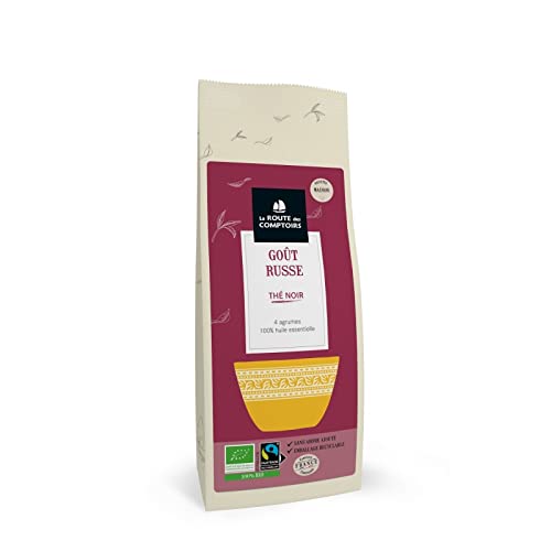 Organic black tea from southern India with certified essential oils of lemon and lime, bergamot, and grapefruit. With this refined blend, discover powerful and fruity oriental flavors. Color: Dark black. Flavor: Tangy and fruity. Infusion strength: Balanced. Ingredients: Black tea , certified organic essential oils of lemon, lime, bergamot, and grapefruit, cornflower petals and calendula petals . (Max Havelaar certified, 97 of total weight). The KG format is not Max Havelaar certified. Ingredients from organic farming INGREDIENTS Black tea, certified organic essential oils of lemon, lime, bergamot, and grapefruit, cornflower and calendula petals INSTRUCTIONS Infuse 1 teaspoon of tea in 250 ml of boiling water for 3-5 minutes. Stir and add milk and sugar to taste. See moreIngredients from organic farming. Ingredients: Black tea , certified organic essential oils of lemon, lime, bergamot, and grapefruit, cornflower and calendula petals. Color: dark black, Flavor: tangy and fruity, Infusion strength: balanced. Organic black tea from southern India with certified essential oils of lemon and lime, bergamot, and grapefruit.Thé Noir Goût Russe Bio - Sachet de 100gDESCRIPTION DU PRODUIT DESCRIPTION DU PRODUIT Thé noir bio du sud de l'Inde aux huiles essentielles certifiées de citron et de limette (citron vert), de bergamote et de pamplemousse. Avec ce mélange raffiné, partez à la rencontre de saveurs orientales puissantes et fruitées. Couleur : noir foncé Saveur : acidulées et fruitée Intensité de l'infusion : équilibrée Ingrédients: Thé noir , huile essentielle certifiée bio de citron, citron-vert, bergamote et pamplemousse, pétales de bleuet et de souci . (labellisé Max Havelaar, 97 du poids total) Le format KG n'est pas certifié Max Havelaar. Ingrédients issus de l'agriculture biologique INGRÉDIENTS Thé noir , huile essentielle certifiée bio de citron, citron-vert, bergamote et pamplemousse, pétales de bleuet et de souci MODE D'EMPLOI Faire infuser 1 cuillère à café de thé pour 250 ml d'eau bouillante pendant 3-5 minutes. Remuer et ajouter du lait et du sucre selon les goûts. Voir plusIngrédients issus de l'agriculture biologique. Ingrédients: Thé noir , huile essentielle certifiée bio de citron, citron-vert, bergamote et pamplemousse, pétales de bleuet et de souci . Couleur : noir foncé, Saveur : acidulées et fruitée, Intensité de l'infusion : équilibrée. Thé noir bio du sud de l'Inde aux huiles essentielles certifiées de citron et de limette (citron vert), de bergamote et de pamplemousse.