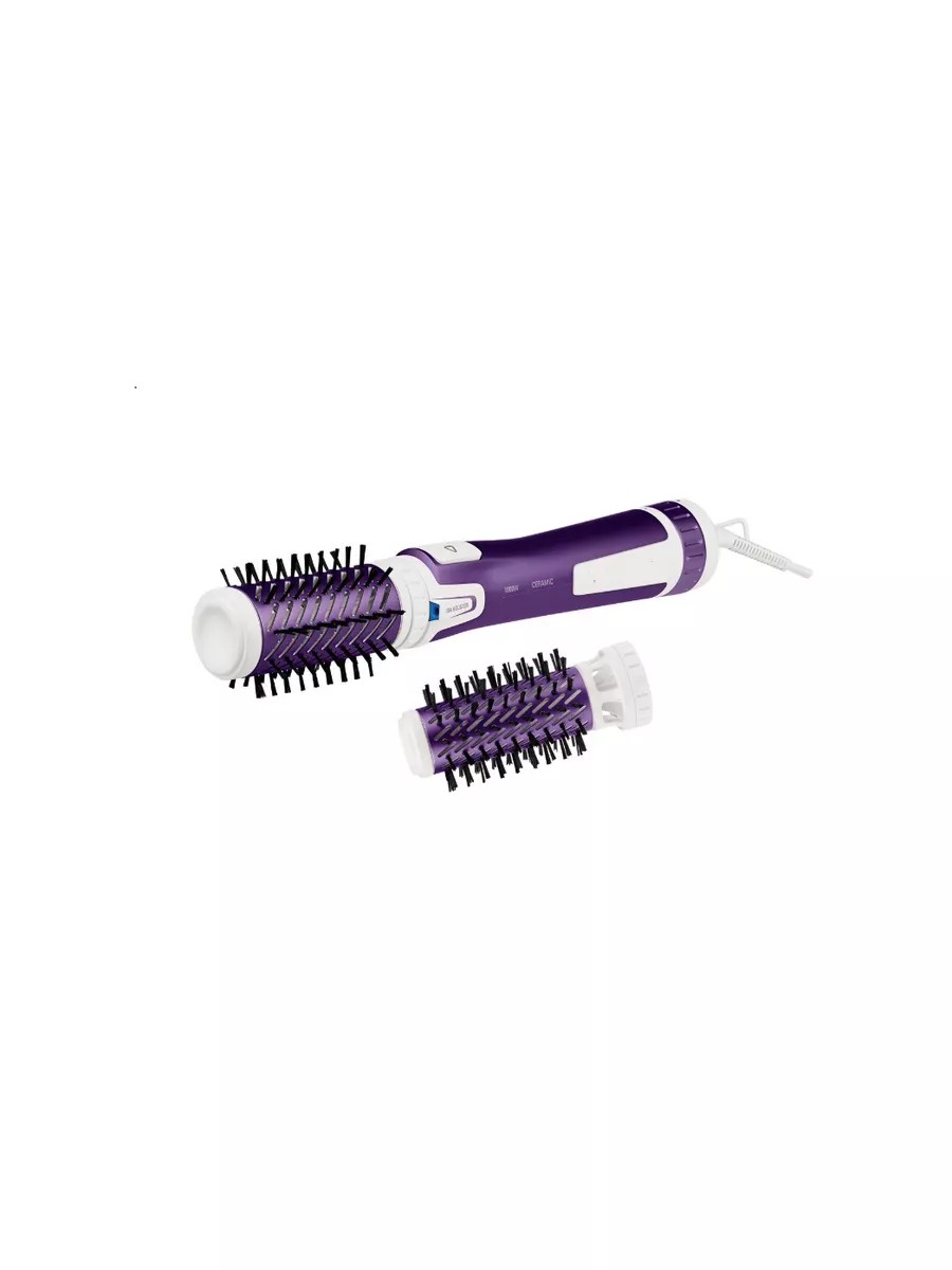Великолепный объем и непревзойдённый блеск как после салона. Вращающаяся щетка обеспечивает профессиональный результат дома, придавая волосам объем и бесподобный блеск. Благодаря двойной ионизации фена-щетки ваши волосы безупречно сияют. Эта уникальная технология снижает статическое электричество и делает волосы гладкими и блестящими. Мощность 1000 Вт, керамическое покрытие и насадки двух размеров позволяют фену быстро высушить и короткие, и длинные волосы, придав им вид как после салона.