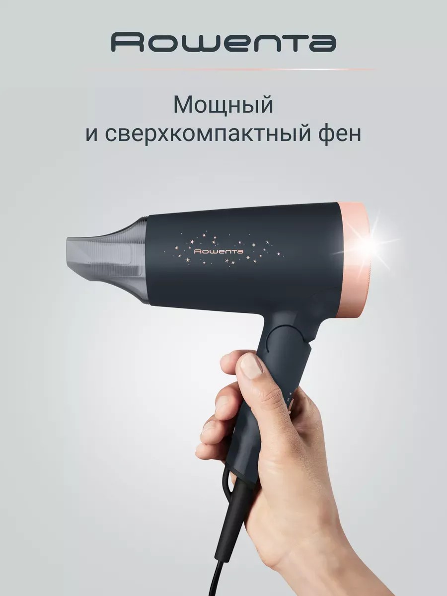 Фен для волос Rowenta Express Style Stellar CV1851F0. Мощный и сверхкомпактный фен для быстрой и эффективной сушки волос. Коллекция Stellar от Rowenta поднимет ваш ежедневный ритуал ухода за собой на новый уровень. Она не только обеспечит вам великолепный вид за считанные минуты, но и порадует особым, праздничным зимним дизайном. Откройте преимущества каждого прибора в коллекции, включая фен Express Style для быстрой сушки и укладки без лишних усилий.