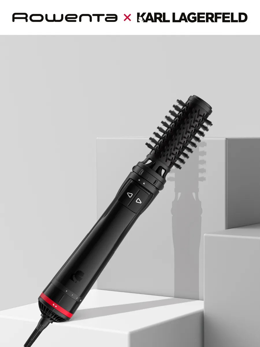 Фен щетка Rowenta Karl Lagerfeld CF952LF0. Вращающаяся фен-щетка повторяет движения профессиональных стилистов, обеспечивая укладку салонного уровня в домашних условиях. Эксклюзивное покрытие Keratin & Glow сочетает в себе кератин и турмалин, снижая статическое электричество и наделяя волосы здоровым сиянием. Две щетки для всех стилей причесок: 50 мм для длинных и средних волос, 40 мм для коротких волос и челки. Точная настройка скорости и температуры для одновременной сушки и укладки, а также обдув холодным воздухом для надежной фиксации прически. Меняйте направление вращения щетки по своему желанию и свободно экспериментируйте с укладкой.