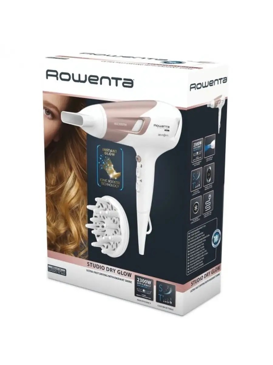 Rowenta Studio Dry Glow CV5830F0 - фен, который обеспечит вашим волосам профессиональный уход. Модель оснащена производительным и одновременно энергоэффективным мотором для быстрой сушки и экономии электричества.ИНТУИТИВНОЕ УПРАВЛЕНИЕДля выбора предпочтительной температуры и скорости обдува предусмотрено две "качельки", позволяющие выставить шесть различных настроек. Например, для защиты ваших локонов от перегрева воспользуйтесь режимом Thermo Control. Зафиксировать созданную укладку поможет ультрахолодный воздух.ПОЛНЫЙ КОМПЛЕКТКроме самого фена, в наборе вы найдёте пару насадок: диффузор и концентратор. Первый предназначен для рассеивания воздушного потока, а второй, наоборот - для направления его строго на один участок шевелюры.УХОД БЕЗ ХЛОПОТRowenta Studio Dry Glow CV5830F0 предельно прост в обслуживании. Для этого периодически снимайте магнитную сетчатую крышку с воздухозаборного отверстия и очищайте его от скопившихся волос и пыли.