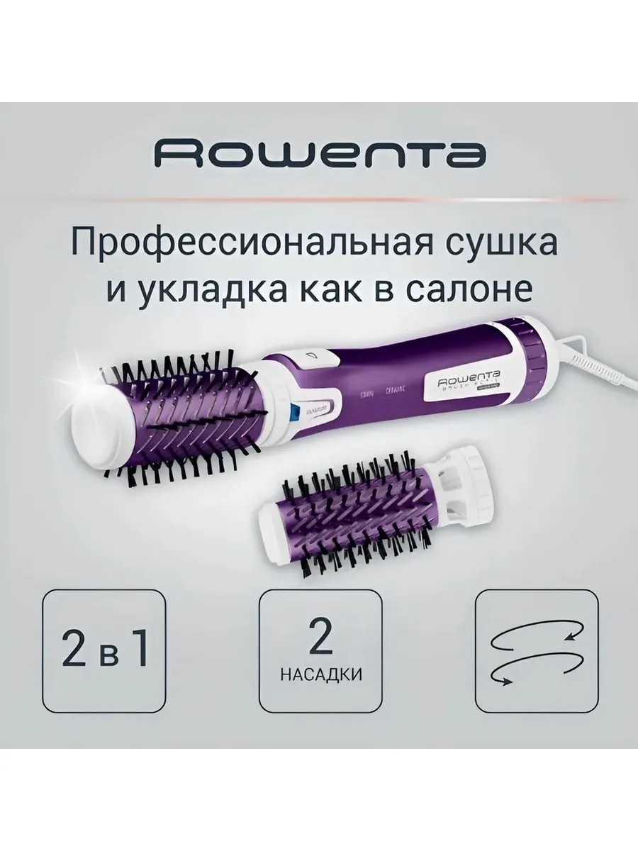 Фен-щётка Rowenta Brush Activ Volume & Shine мощностью 1000 Вт предназначена для одновременной сушки и укладки волос и заменяет собой сразу три предмета – фен, выпрямитель или щипцы для завивки и круглую щётку.