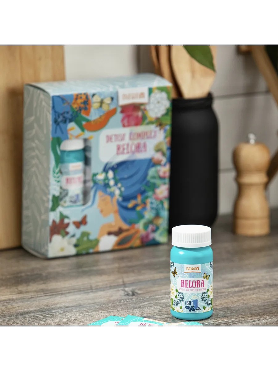 Directions: Take 2 capsules 30 minutes before breakfast. Drink the tea at your discretion. Do not use if you are under 18, have cardiovascular disease, or are pregnant or breastfeeding. To understand how Relora works, you need to understand why people crave food when they're stressed. Typically, they crave sweets and starchy foods. This is because the body requires additional glucose. Increased appetite during stressful situations is the result of increased cortisol levels. In today's world, people face stressful situations at work or in family settings, daily arguments, a busy schedule, and constant rushing—all of which can trigger emotional distress. Regularly eating sweets after the slightest stress can lead to the accumulation of subcutaneous fat over time. This can lead to excess weight. Relora helps control cortisol levels to maintain your figure. Detox Tea will help gently cleanse your body of toxins and waste. As a result, you can lose extra pounds and feel lighter in movement.