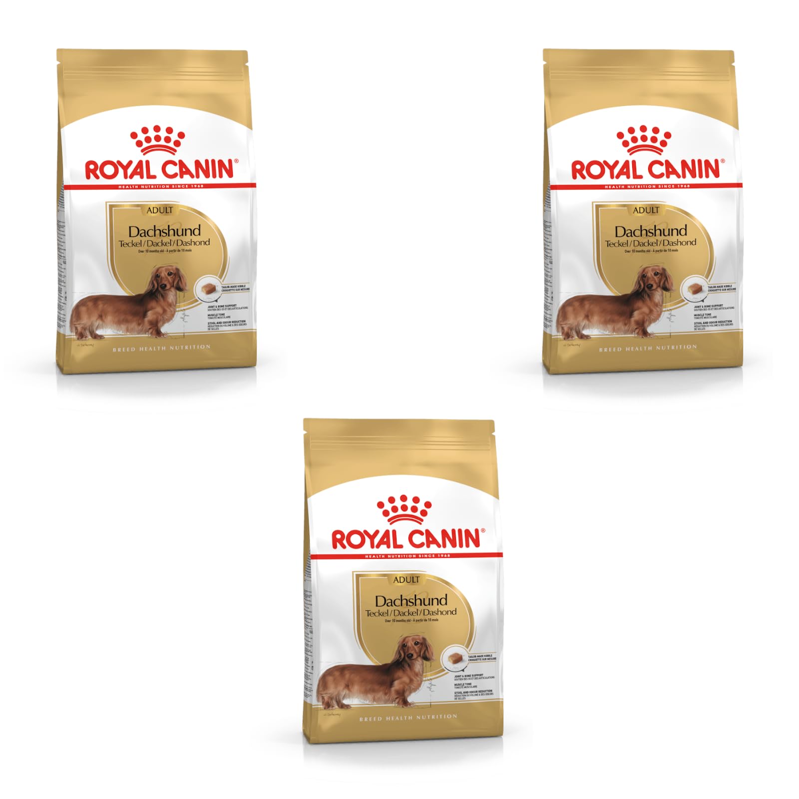 Why a special diet for adult dachshunds? The Dachshund is known for its strong will and great courage. The friendly dog enthusiastically accompanies his human pack in all activities. As each breed of dog has its own needs, nutrition should support each breed's unique lifestyle and promote optimal health. Royal Canin Dachshund Adult is suitable for dachshunds from 10 months of age and has been specially designed to meet the needs of adult dachshunds. To best support a dachshund's health, a diet adapted to the dog's energetic temperament is recommended. The dachshund is distinguished anatomically by its very short legs and long back. The joints are therefore subject to increased pressure. The exclusive Royal Canin Dachshund Adult formula can help support the bones and joints of the Dachshund with its adjusted calcium and phosphorus content. Additionally, highly digestible dry food can help your dog maintain ideal weight and muscle mass. By adding a "calcium catcher", the risk of plaque formation can be reduced. INGREDIENTS COMPOSITION: rice, dehydrated poultry proteins, wheat gluten , hydrolyzed animal proteins, animal fats, vegetable fibers, beet pulp, mineral substances (including pentasodium tripolyphosphate 0.35 ), fish oil, soybean oil, fructo-oligosaccharides, borage oil, marigold extract, glucosamine from fermentation, hydrolyzed cartilage (source of chondroitin) ADDITIVES (per kg): Nutritional additives: Vitamin A: 31600 IU, Vitamin D3: 843 IU, Iron (3b103): 36 mg, Iodine (3b201, 3b202): 3.6 mg, Copper (3b405, 3b406): 11 mg, Manganese (3b502, 3b504): 47 mg, Zinc (3b603, 3b605, 3b606): 141 mg, Selenium (3b801, 3b811, 3b812): 0.08 mg - Technological additives: clinoptilolite of sedimentary origin: 10 g - Preservatives - Antioxygens ANALYTICAL COMPONENTS: Protein: 28.0 - Crude fat: 14.0 - Crude fiber: 3.0 - Crude ash: 6.5 - Calcium: 0.8 - Phosphorus: 0.7✓ HEALTH SUPPORT - To best support a Dachshund's health, a diet tailored to the dog's energetic temperament is recommended. ✓ PLAQUE PREVENTION - With the addition of a "calcium catcher", the risk of plaque formation can be reduced to support your Dachshund's dental health. ✓ HIGHLY DIGESTIBLE DRY FOOD - The highly digestible dry food can help your Dachshund maintain its ideal weight and muscle mass. ✓ EXCLUSIVE FORMULA - Royal Canin Adult Dachshund's exclusive formula can help support the Dachshund's bones and joints thanks to its adjusted calcium and phosphorus content. ✓ ROYAL CANIN ADULT DACHSHUND - Royal Canin Adult Dachshund is suitable for Dachshunds from 10 months old and has been specially formulated to meet the needs of adult Dachshunds. Pourquoi une alimentation spéciale pour les teckels adultes ? Le teckel est connu pour sa forte volonté et son grand courage. Le chien amical accompagne avec enthousiasme sa meute humaine dans toutes les activités. Comme chaque race de chien a ses propres besoins, l'alimentation doit soutenir le style de vie unique de chacune et favoriser une santé optimale. Royal Canin Teckel Adulte est adapté aux teckels à partir de 10 mois et a été spécialement conçu pour répondre aux besoins des teckels adultes. Pour soutenir au mieux la santé d'un teckel, une alimentation adaptée au tempérament énergique du chien est recommandée. Le teckel se distingue anatomiquement par ses pattes très courtes et son dos long. Les articulations sont donc soumises à une pression accrue. La formule exclusive de Royal Canin Teckel Adulte peut contribuer à soutenir les os et les articulations du teckel grâce à sa teneur ajustée en calcium et en phosphore. De plus, l'alimentation sèche hautement digestible peut aider votre chien à maintenir son poids idéal et sa masse musculaire. Grâce à l'ajout d'un "attrape-calcium", le risque de formation de plaque dentaire peut être réduit. INGRÉDIENTS COMPOSITION : riz, protéines de volaille déshydratées, gluten de blé , protéines animales hydrolysées, matières grasses animales, fibres végétales, pulpe de betterave, substances minérales (dont tripolyphosphate pentasodique 0,35 ), huile de poisson, huile de soja, fructo-oligosaccharides, huile de bourrache, extrait de tagète, glucosamine issue de fermentation, cartilage hydrolysé (source de chondroïtine) ADDITIFS (au kg) : Additifs nutritionnels : Vitamine A : 31600 UI, Vitamine D3 : 843 UI, Fer (3b103) : 36 mg, Iode (3b201, 3b202) : 3,6 mg, Cuivre (3b405, 3b406) : 11 mg, Manganèse (3b502, 3b504) : 47 mg, Zinc (3b603, 3b605, 3b606) : 141 mg, Sélénium (3b801, 3b811, 3b812) : 0,08 mg - Additifs technologiques : clinoptilolite d'origine sédimentaire : 10 g - Conservateurs - Antioxygènes COMPOSANTS ANALYTIQUES : Protéine : 28,0 - Matières grasses brutes : 14,0 - Cellulose brute : 3,0 - Cendres brutes : 6,5 - Calcium : 0,8 - Phosphore : 0,7✓ SOUTIEN DE LA SANTÉ - Pour soutenir au mieux la santé d'un teckel, une alimentation adaptée au tempérament énergique du chien est recommandée. ✓ PRÉVENTION DE LA PLAQUE DENTAIRE - Grâce à l'ajout d'un "attrape-calcium", le risque de formation de plaque dentaire peut être réduit pour soutenir la santé dentaire de votre teckel. ✓ ALIMENTATION SÈCHE HAUTEMENT DIGESTIBLE - L'alimentation sèche hautement digestible peut aider votre teckel à maintenir son poids idéal et sa masse musculaire. ✓ FORMULE EXCLUSIVE - La formule exclusive de Royal Canin Teckel Adulte peut contribuer à soutenir les os et les articulations du teckel grâce à sa teneur ajustée en calcium et en phosphore. ✓ ROYAL CANIN TECKEL ADULTE - Royal Canin Teckel Adulte est adapté aux teckels à partir de 10 mois et a été spécialement conçu pour répondre aux besoins des teckels adultes.