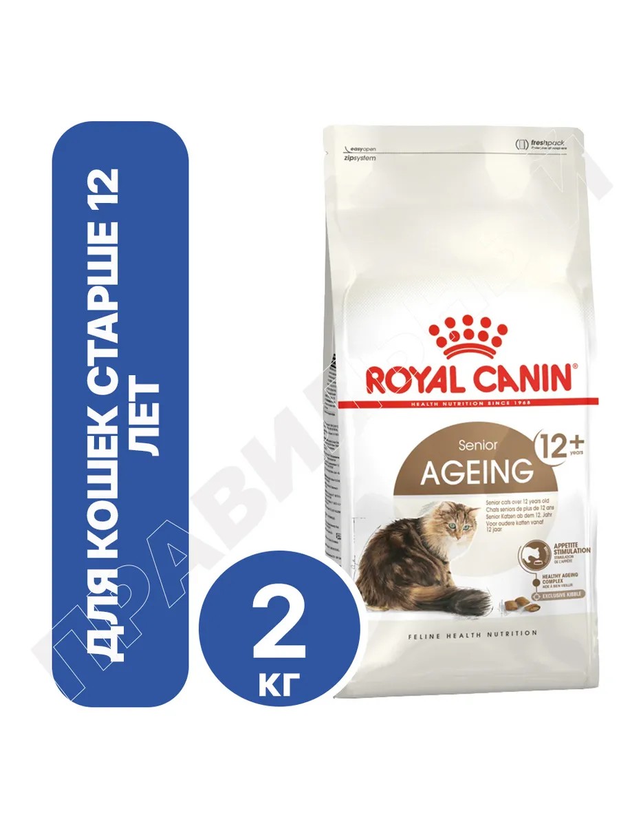 Royal Canin Senior Ageing 12+ — это полноценный сбалансированный корм для пожилых кошек в возрасте старше 12 лет. Во второй фазе старения (после достижения 12 лет) возрастные изменения происходят быстрее и становятся заметными, поэтому корм способствует поддержанию здоровья почек, поддерживает подвижность суставов, стимудирует аппетит и поддерживает здоровье кожи и шерсти.