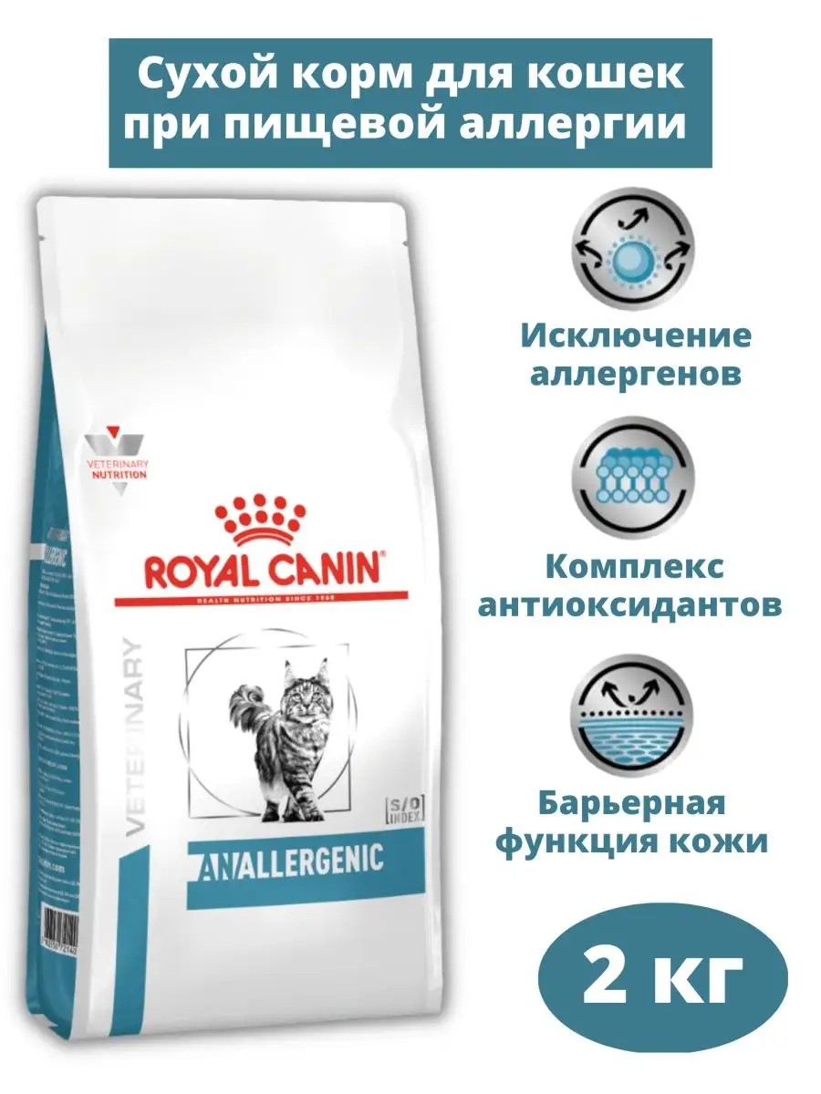 Корм сухой полнорационный диетический для взрослых кошек Royal Canin Anallergenic (роял канин аналлергеник для кошек) - корм для кошек, применяемый при пищевой аллергии или пищевой непереносимости некоторых ингредиентов, 2 кг. Корм для кошек royal canin anallergenic при пищевой аллергии или непереносимости: - снижает риск развития аллергических реакций на корм; - поддерживает естественный защитный барьер кожи. Показания: Нежелательные реакции на корм (НРК) с дерматологическими и/или гастроэнтерологическими симптомами: - постановка диагноза (элиминационное исследование), - диетотерапия. Атопический дерматит кошек в сочетании с НРК. Воспалительные заболевания кишечника (ВЗК). Противопоказания: Беременность, лактация, рост. РЕКОМЕНДАЦИЯ. При подозрении на пищевую аллергию или пищевую непереносимость следует перевести кошку на специальную диету без соблюдения переходного периода. Сухой корм royal canin anallergenic может применяться на протяжении всей жизни животного. Благодаря высокой вкусовой привлекательности Royal Canin (роял канин) представляет собой лакомство для питомца, лакомство для котов и кошек.