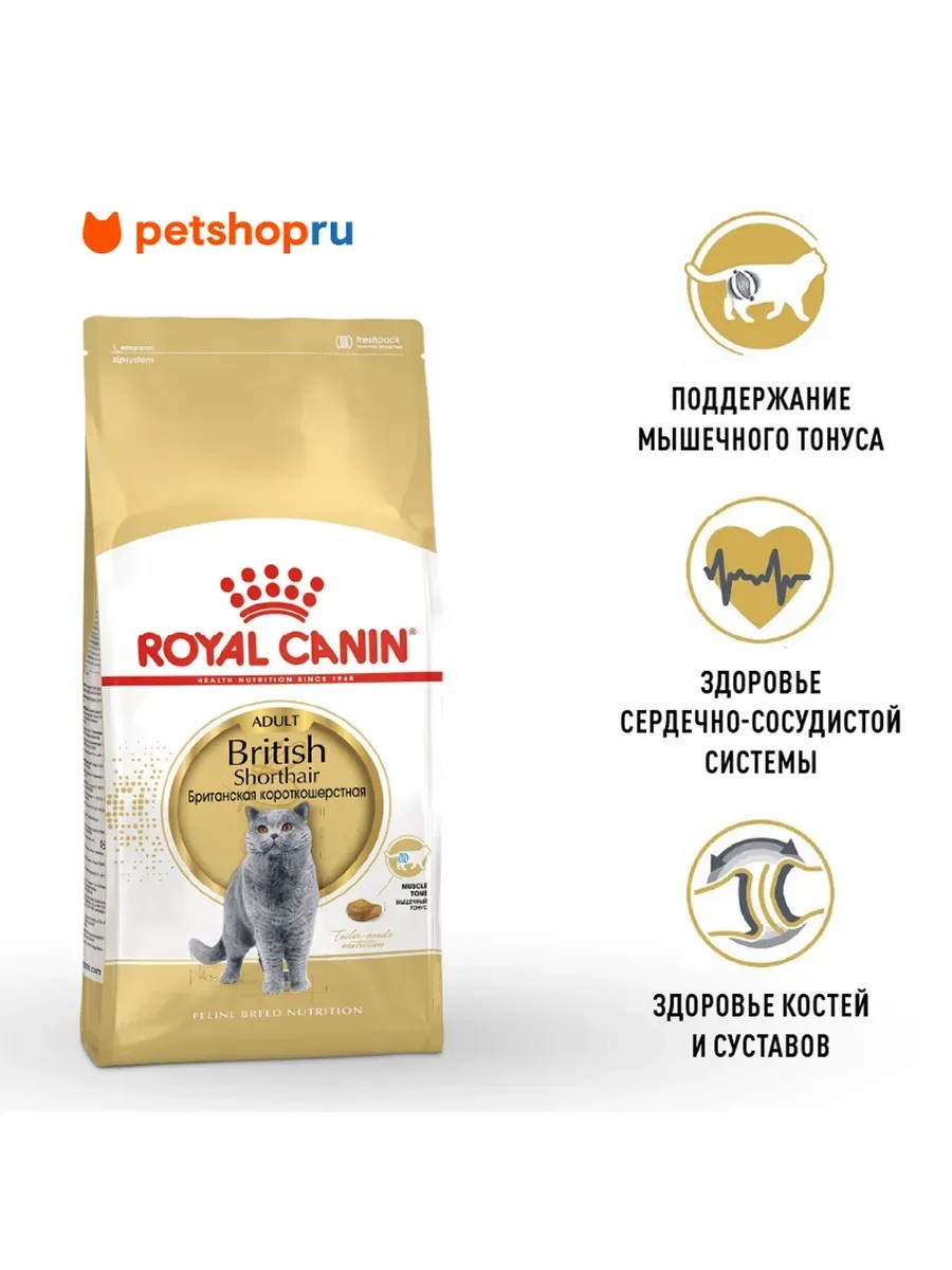 Корм сухой полнорационный сбалансированный для кошек - Специально для взрослых британских короткошерстных кошек в возрасте 12 месяцев и старше British Shorthair Adult (Британская Короткошерстная Эдалт) Royal Canin, подходящий для кошек британской короткошерстной породы в возрасте от 1 года и старше, специально с учетом потребностей вашей кошки в питательных веществах.