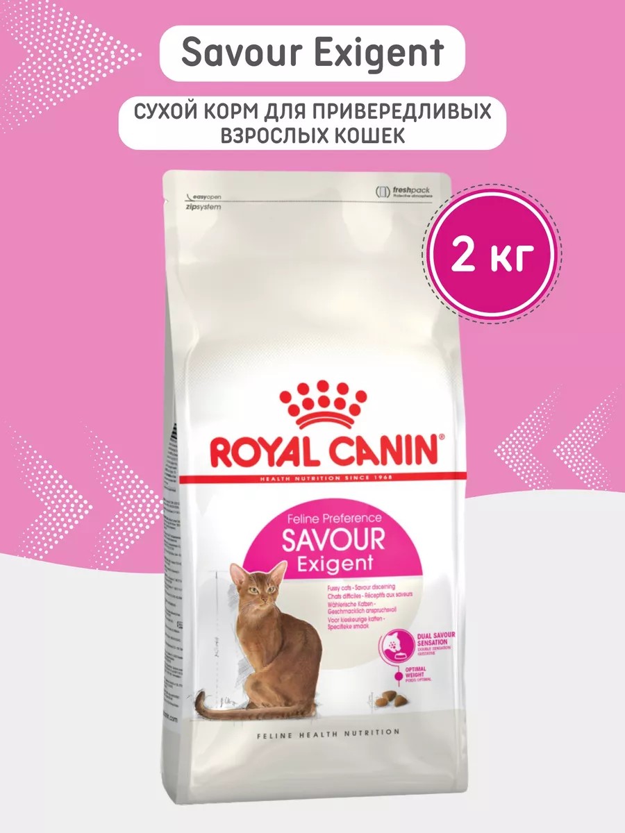 Корм для кошек Royal Canin Savour Exigent - это корм для привередливых в питании кошек. Savour Exigent - это корм, содержащий два взаимодополняющих вида крокет с разными составом и текстурой. Адаптированный уровень калорийности ROYAL CANIN Savour Exigent поможет поддержать в норме вес взрослой кошки.