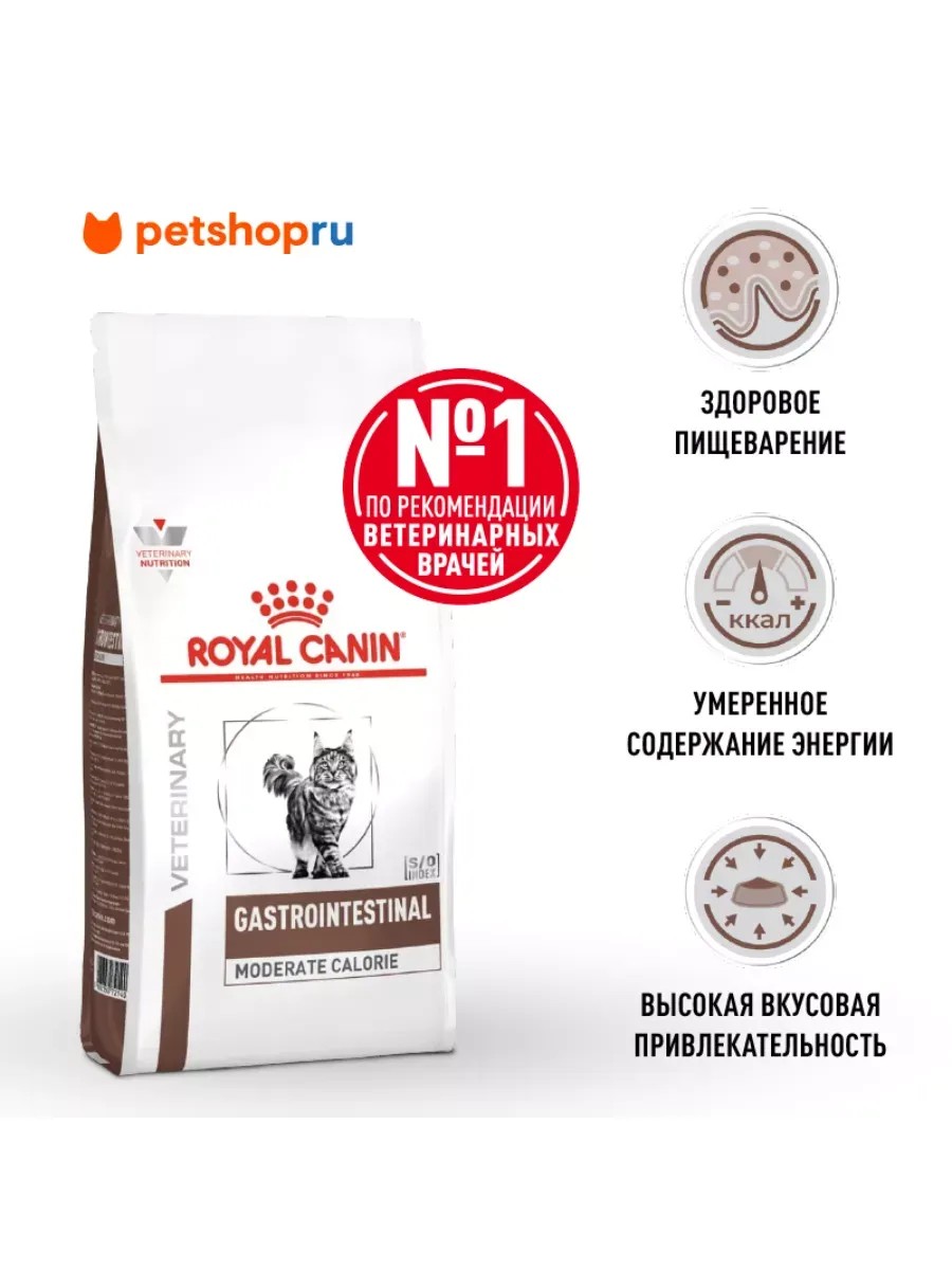 ROYAL CANIN GASTROINTESTINAL MODERATE CALORIE - ветеринарная диета, рекомендуемая для кошек с избыточной массой тела (или кошек, склонных к набору избыточной массы тела).