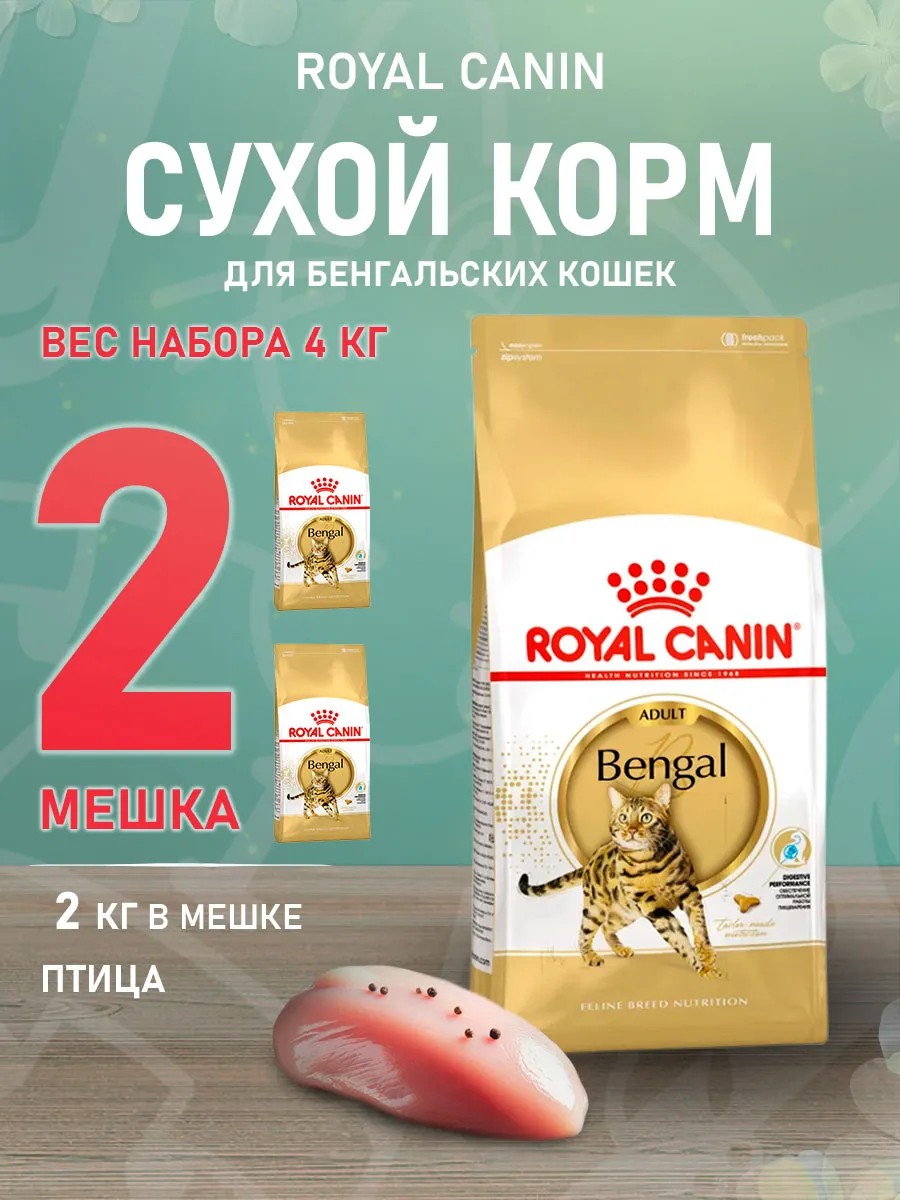 ROYAL CANIN Корм сухой Bengal для кошек Бенгальская 2 кг 2 шт