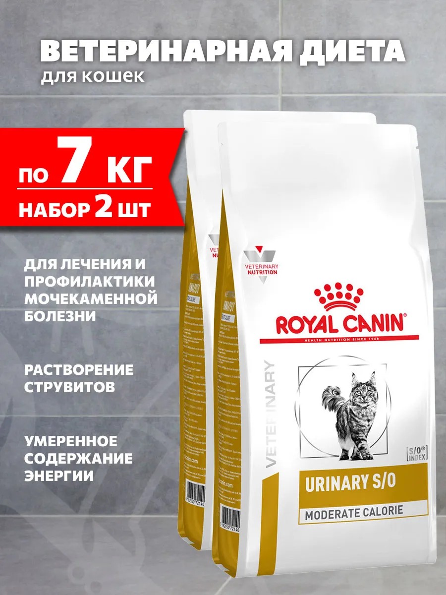 ROYAL CANIN Корм сухой Urinary S/O Moderate Calorie для кошек 7 кг 2 шт