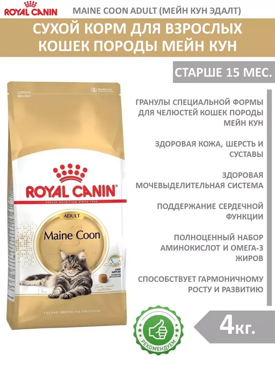 | Размер животного | для взрослых кошек мейн-кун; royal canin для кошек; корм для мейн куна |