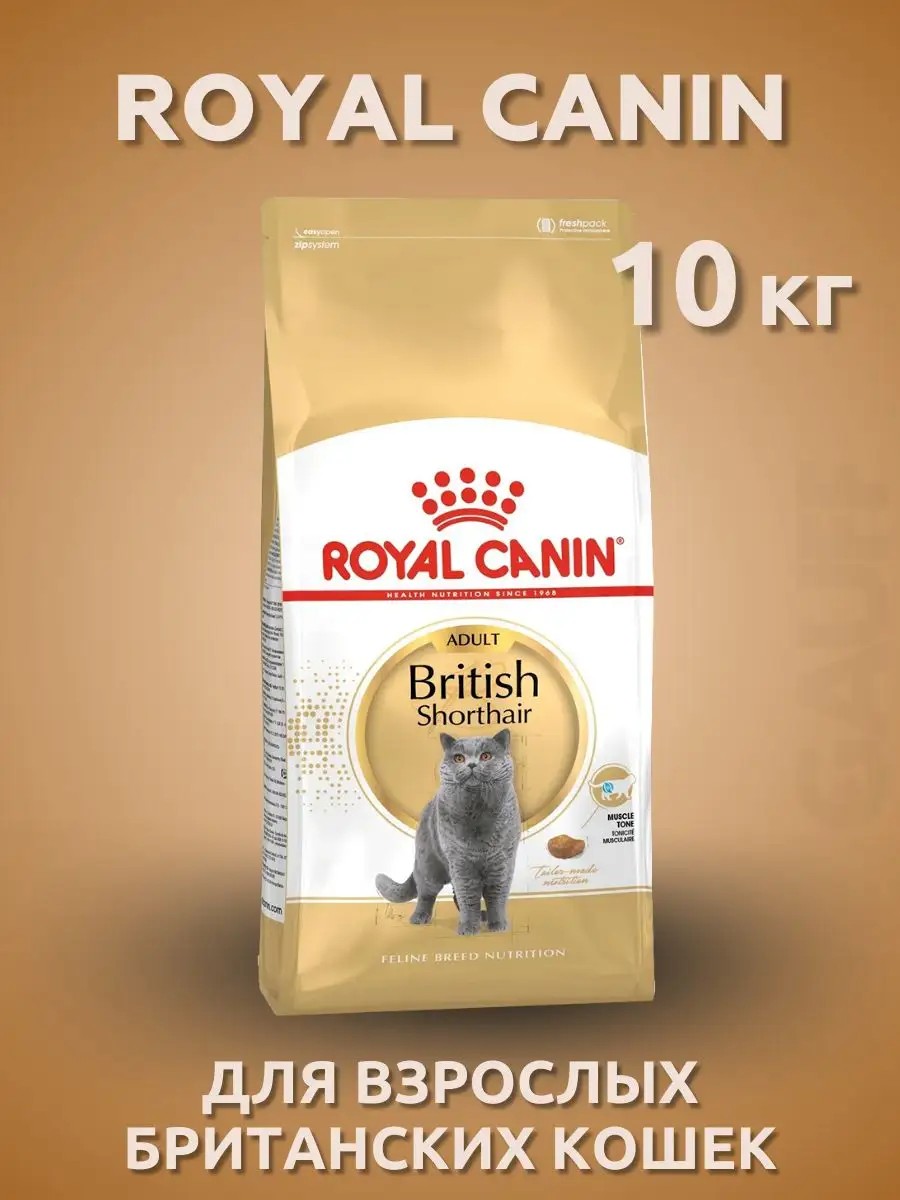 Британская короткошерстная: сухой корм специально для британских короткошерстных кошек старше 12 месяцев. BRITISH SHORTHAIR Adult, благодаря адаптированному содержанию белков, помогает кошкам поддерживать мышечную массу. Жирные кислоты Омега 3 способствуют здоровью суставов и поддержанию подвижности.Адаптированные размеры, форма (в виде полумесяца) и текстура крокетПоддерживает мышечную массуСпособствует здоровью костей и суставовПоддерживает работу сердца100% полнорационное и сбалансированное питание.Формула продукта ROYAL CANIN British Shorthair Adult разработана с учетом индивидуальных потребностей взрослых кошек британской короткошерстной породы.Эти кошки отличаются коренастым телосложением. Высокий уровень содержания белков в ROYAL CANIN British Shorthair Adult адаптирован для поддержания их мышечной массы. Кроме того, продукт обогащен L-карнитином – веществом, стимулирующим метаболизм жиров. ЭПК и ДГК (жирные кислоты омега-3) способствуют поддержанию здоровья суставов.Таким образом, кошка может вести свойственный ей активный образ жизни, не испытывая дискомфорта при физических нагрузках. Сбалансированный комплекс минеральных веществ поддерживает здоровье сердечно-сосудистой системы.Для удовлетворения индивидуальных предпочтений каждого животного ROYAL CANIN British Shorthair Adult выпускается также в форме влажного продукта в виде цилиндрических кусочков в соусе.Если Вы выбрали для своей кошки смешанное питание, следуйте рекомендованным нормам кормления, чтобы сочетать сухой и влажный продукт в пропорциях, оптимальных для здоровья животного.Корм сухой полнорационный сбалансированный для кошек - Специально для взрослых британских короткошерстных кошек старше 12 месяцевБританская короткошерстная: сухой корм специально для британских короткошерстных кошек старше 12 месяцев.