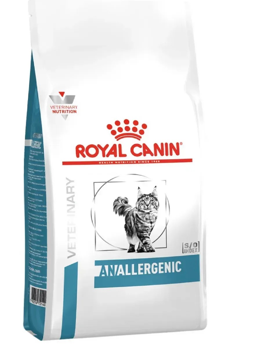 Royal Canin Anallergenic cat food for food allergies and intolerances, 2 kg. Complete food for cats with food allergies or intolerances. Indications: Adverse food reaction (AFR): Elimination diet of first choice. Management of patients with AFR (severe cases). Inflammatory bowel disease (IBD).