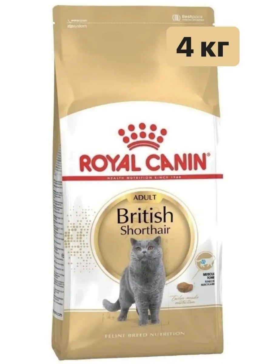 The ROYAL CANIN British Shorthair Adult diet takes into account the special needs of adult cats of this breed and helps maintain: muscle mass and optimal weight; joint health and mobility; cardiovascular health; oral hygiene; 100% complete and balanced nutrition.