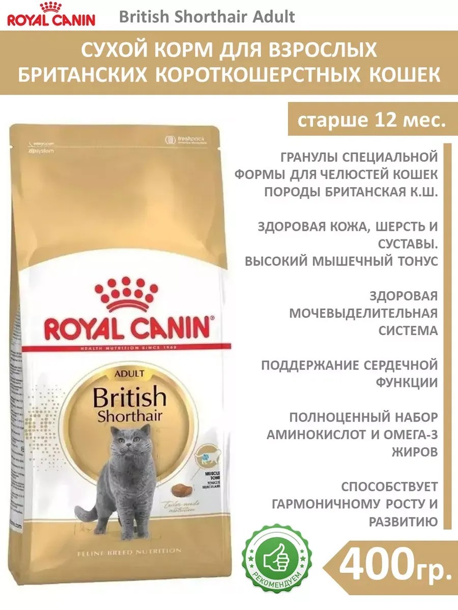 Размер животногодля взрослых кошек британская короткошерстная; корм для британца; royal canin для кошек