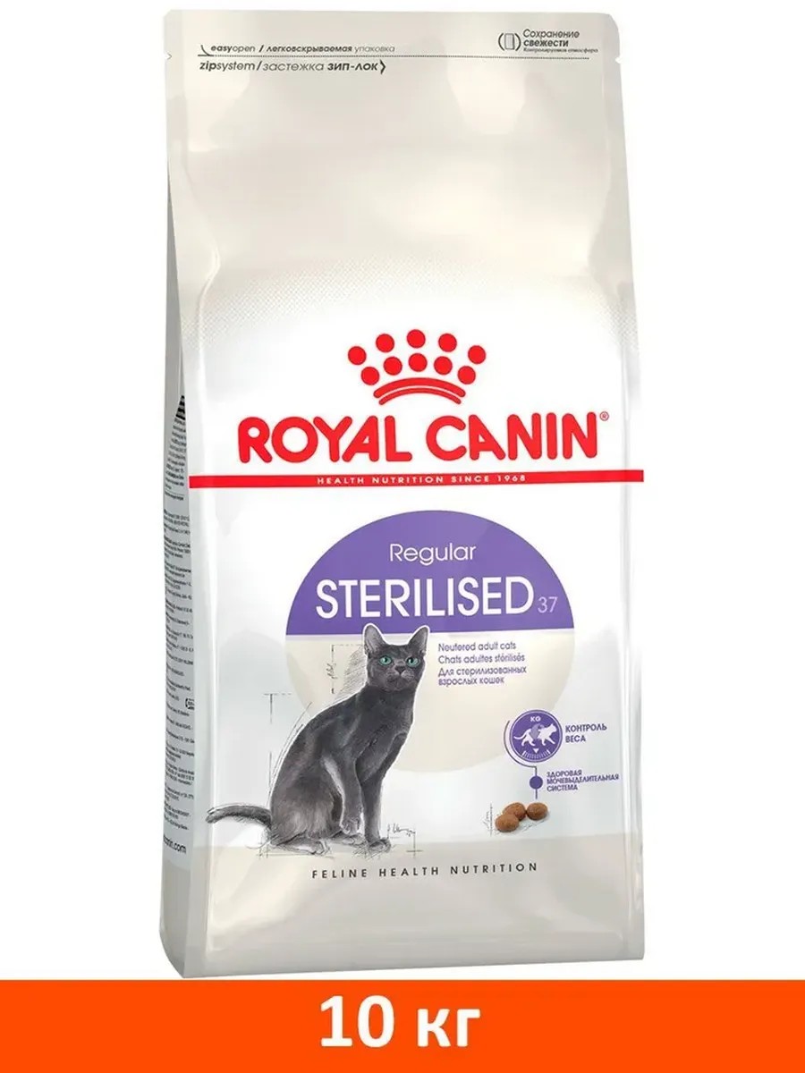 ROYAL CANIN STERILISED 37 (СТЕРИЛАЙЗД 37) снижает риск развития заболеваний мочевыделительной системы за счет сбалансированного содержания минералов и поддержания рН мочи.