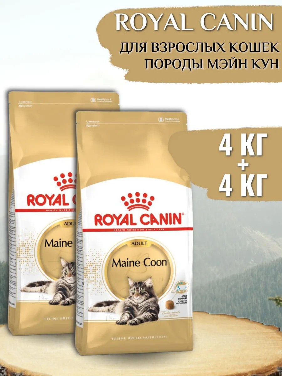 Кошки породы Мэйн Кун обладают густой полудлинной шерстью и тонким мягким подшерстком. Содержит специальный комплекс нутриентов для здоровья кожи и шерсти, включающий аминокислоты, витамины, жирные кислоты Омега 3 и Омега 6