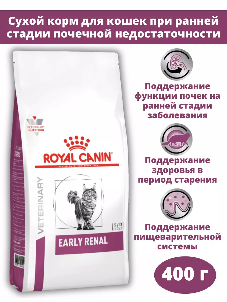 | Комплектация | сухой корм для взрослых кошек при ранней стадии почечной недостаточности Early Renal - 400 грамм |