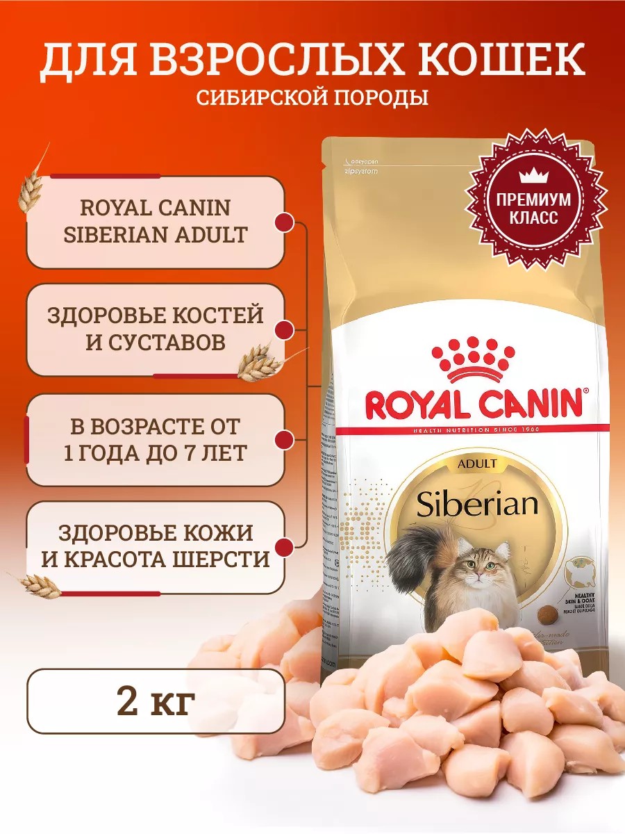 Выбирайте корма для кошек Royal Canin, чтобы обеспечить своего сибирского кошки всем необходимым. Кошачий корм для кошек Siberian Adult – это забота о здоровье и красоте вашего питомца!